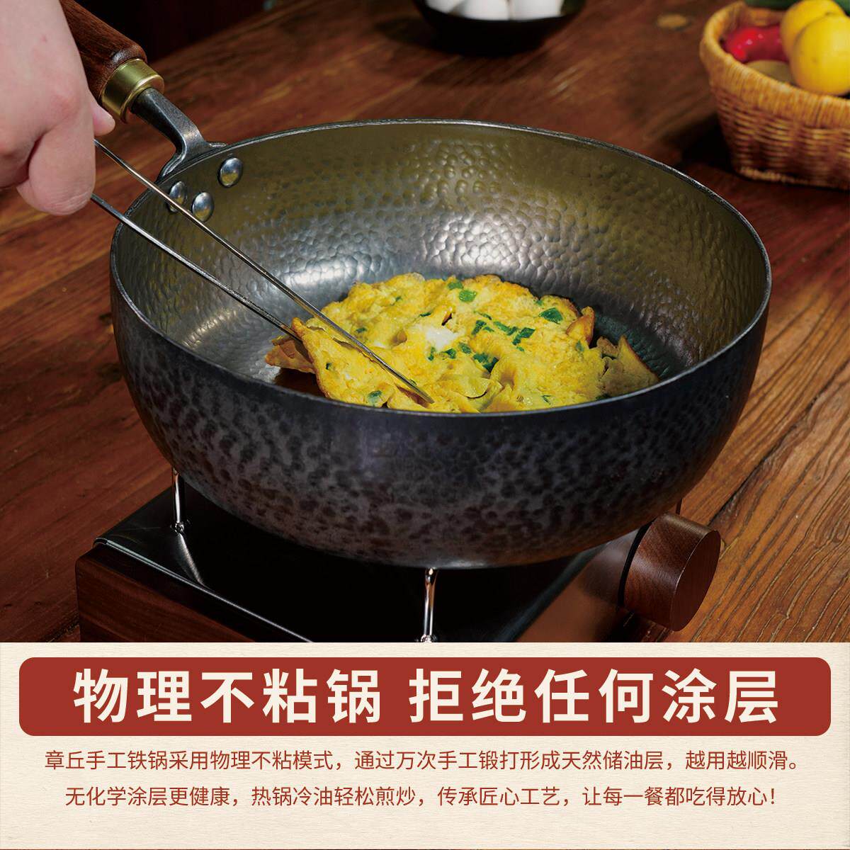 平底煎锅章丘手工铁锅老式 锅牛排早餐烙饼 无涂层不沾锅家用免开