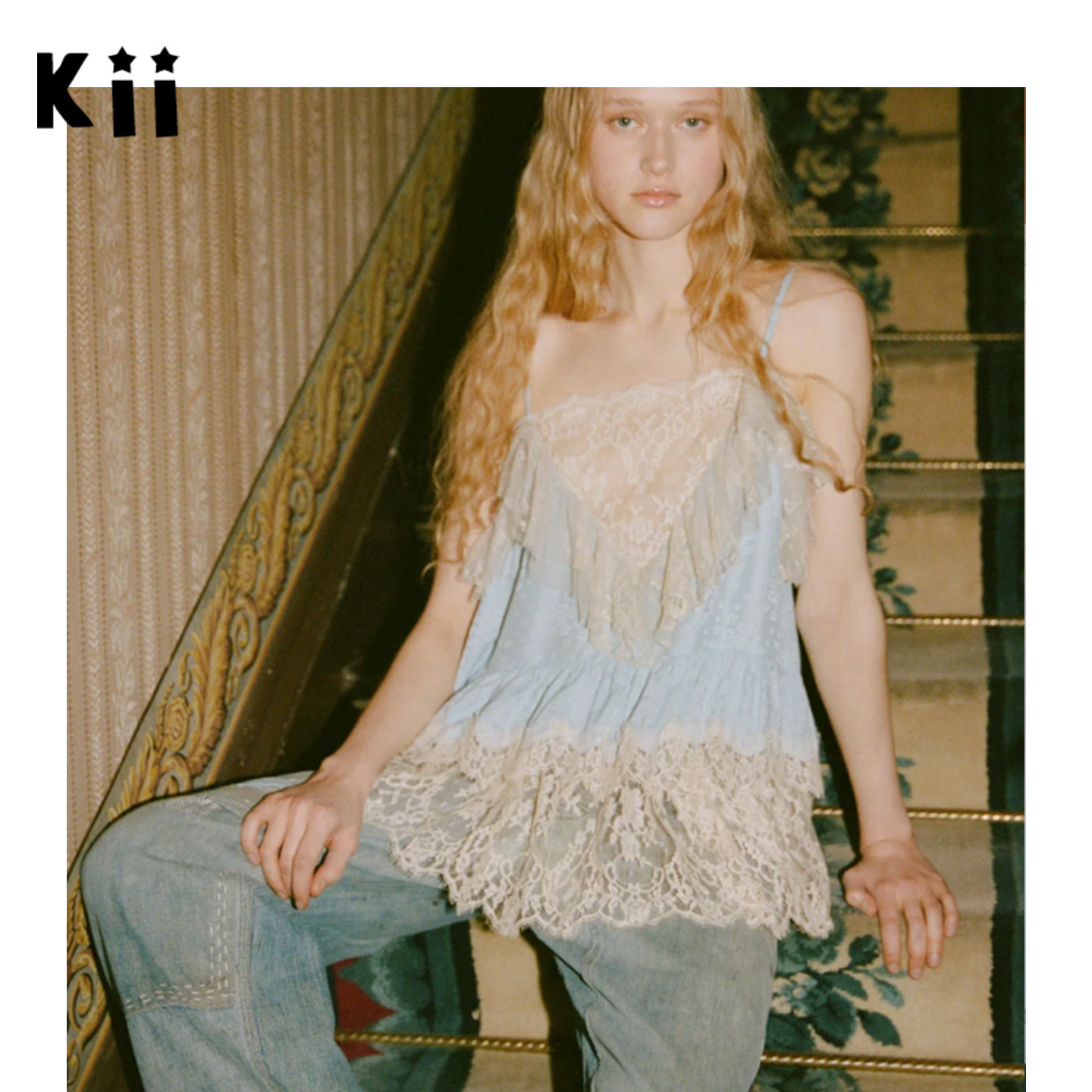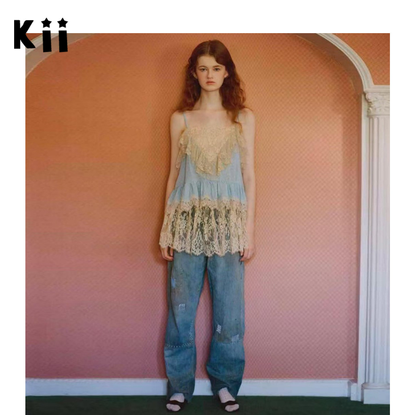 Claira修补牛仔裤 Kii部分现货Sea 蕾丝花边吊带上衣 York New