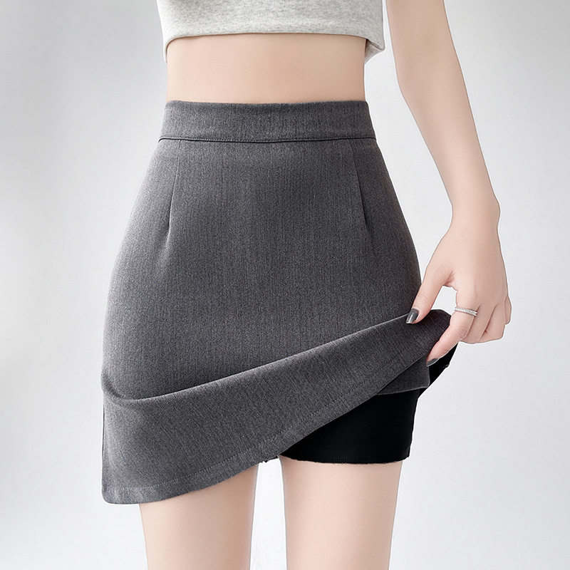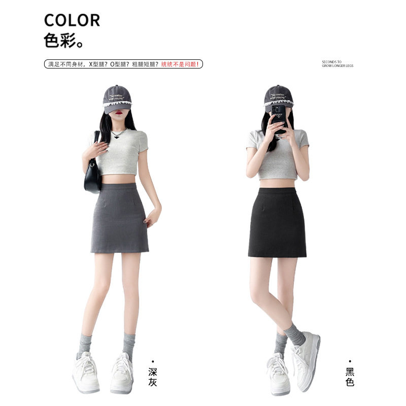 包臀裙 高腰百搭A字半身裙通勤防走光西装 韩版 灰色短裙女春夏新款