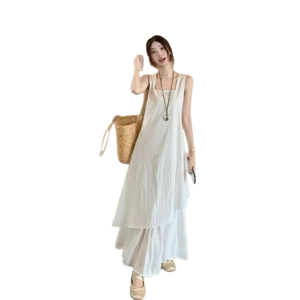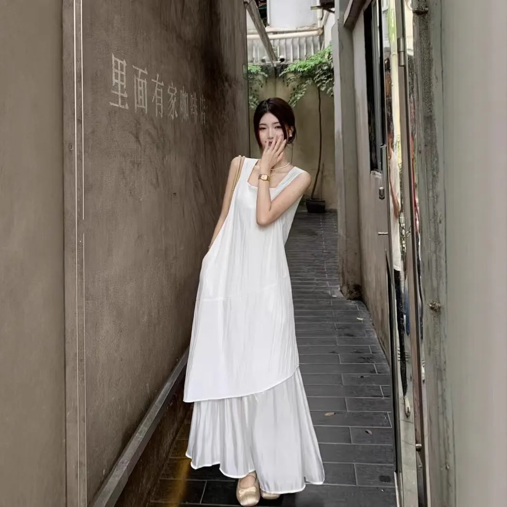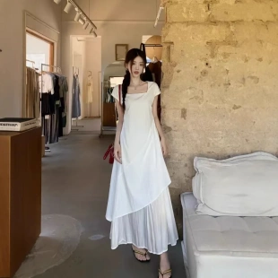高级感假两件背心长裙 2026新款 法式 气质不规则白色连衣裙子女夏季