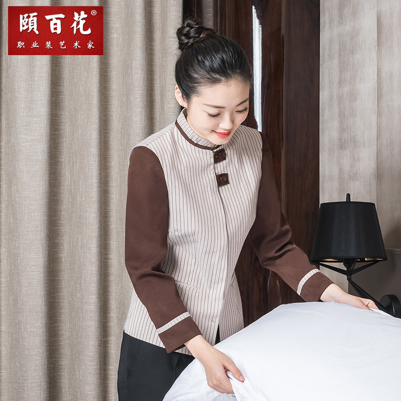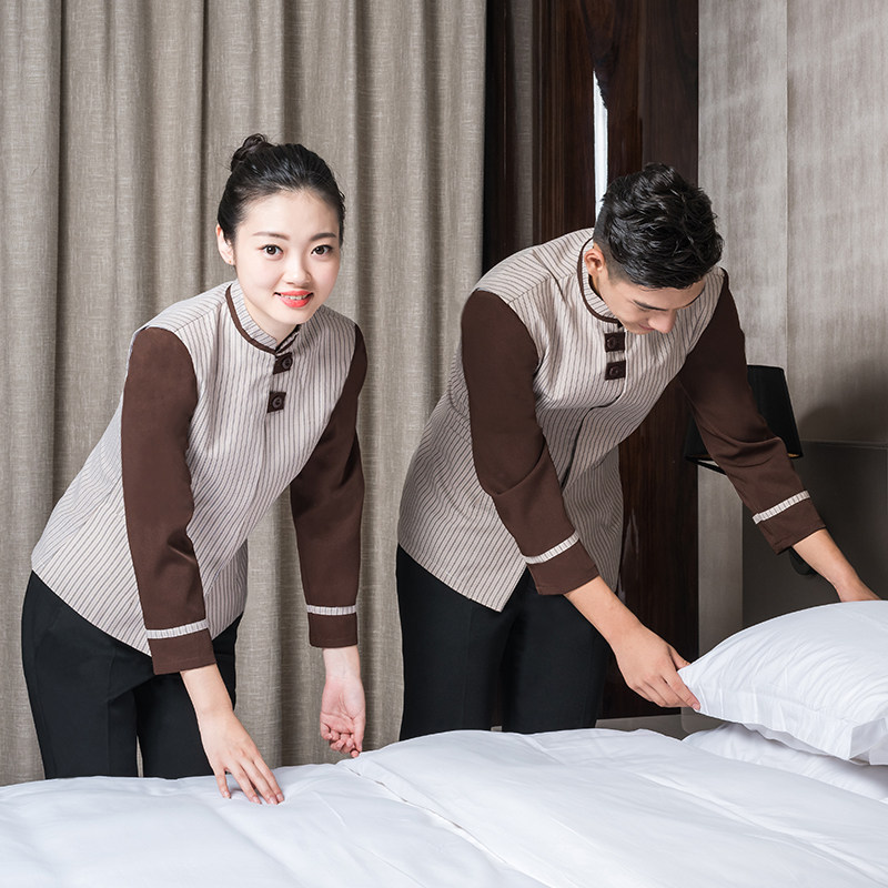 条纹 物业宾馆客房服务员清洁工服装 酒店保洁员工作服女长袖 秋冬款