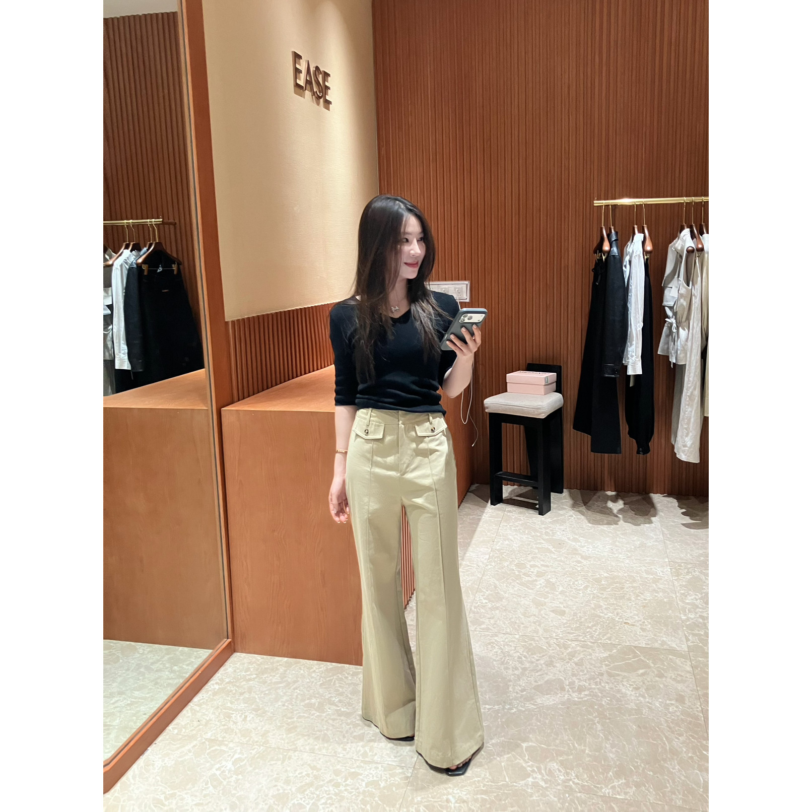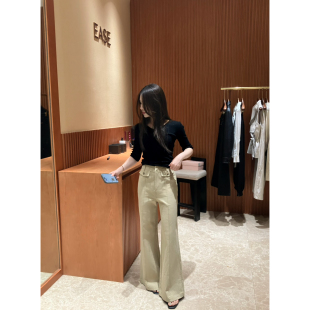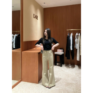 女高腰显瘦气质长裤 简约百搭纯色拼接微喇休闲裤 子潮 春季 EASE正品