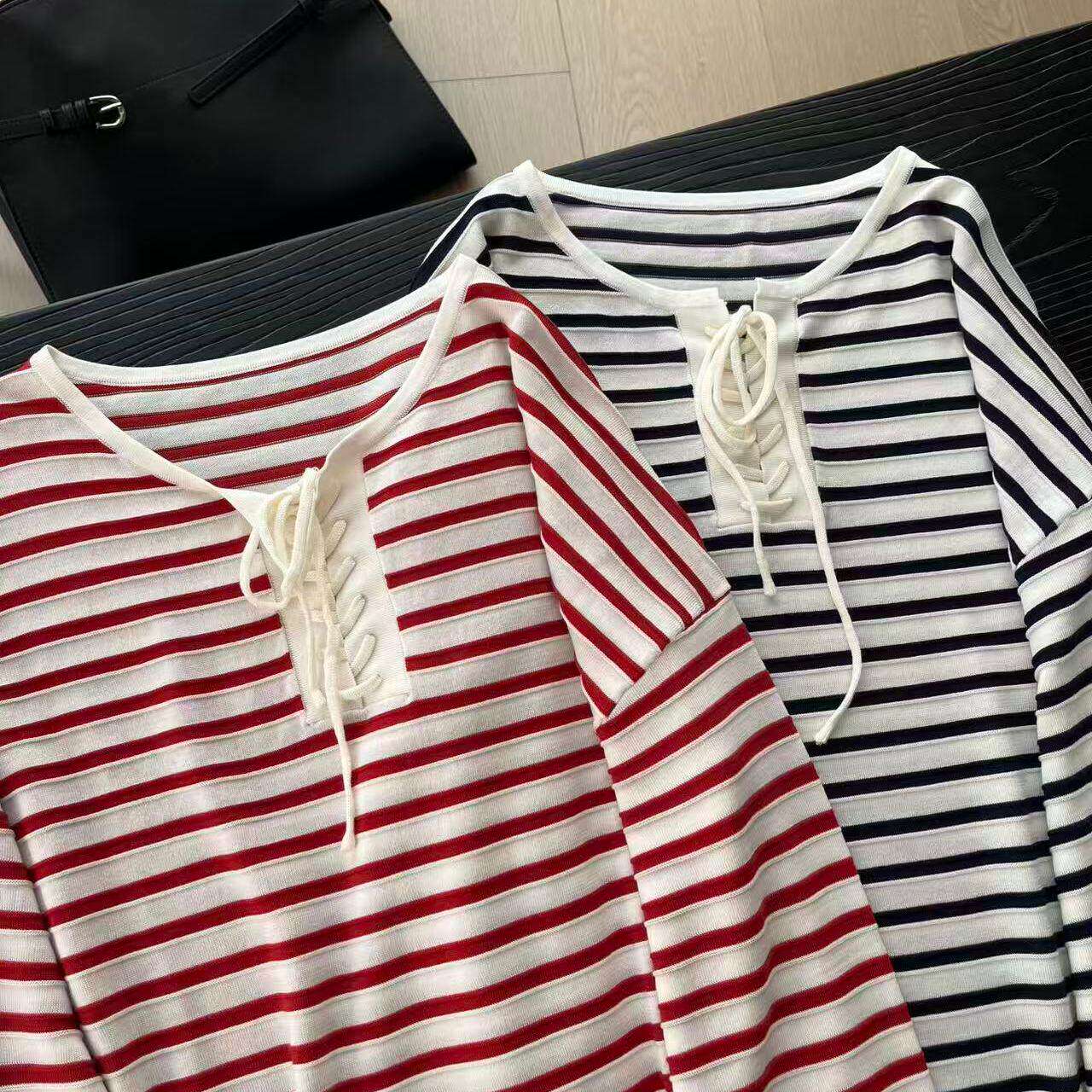 罩衫 简约条纹系带宽松长袖 26新款 女百搭 航海系列