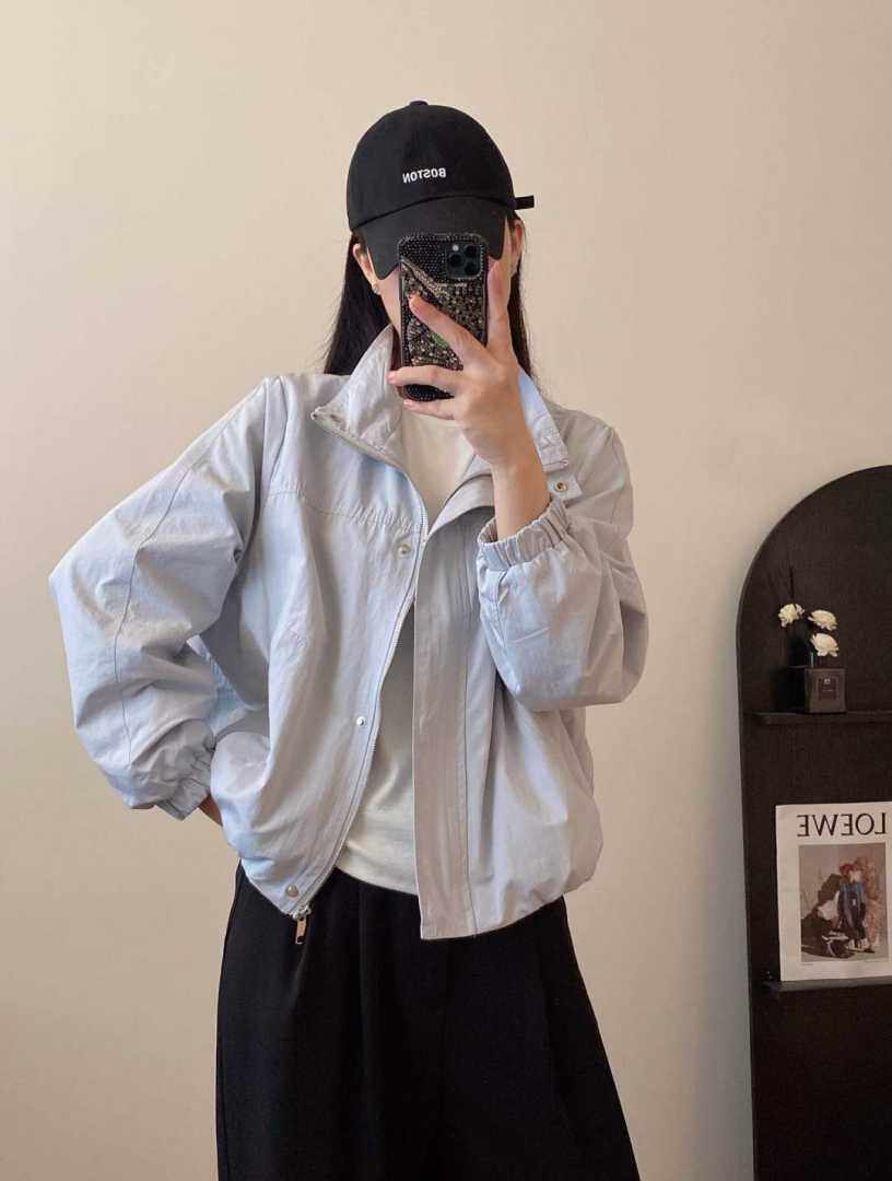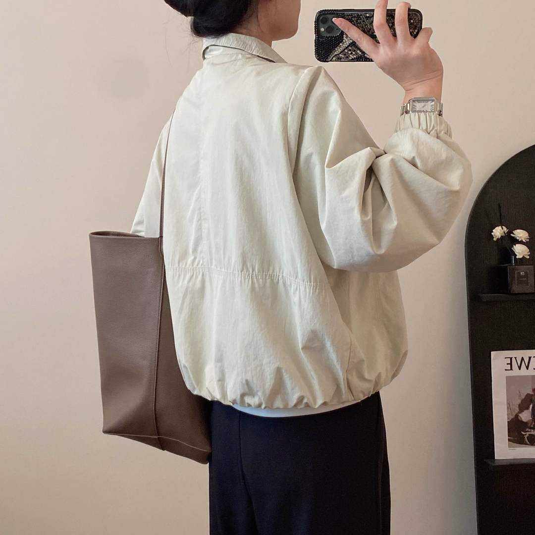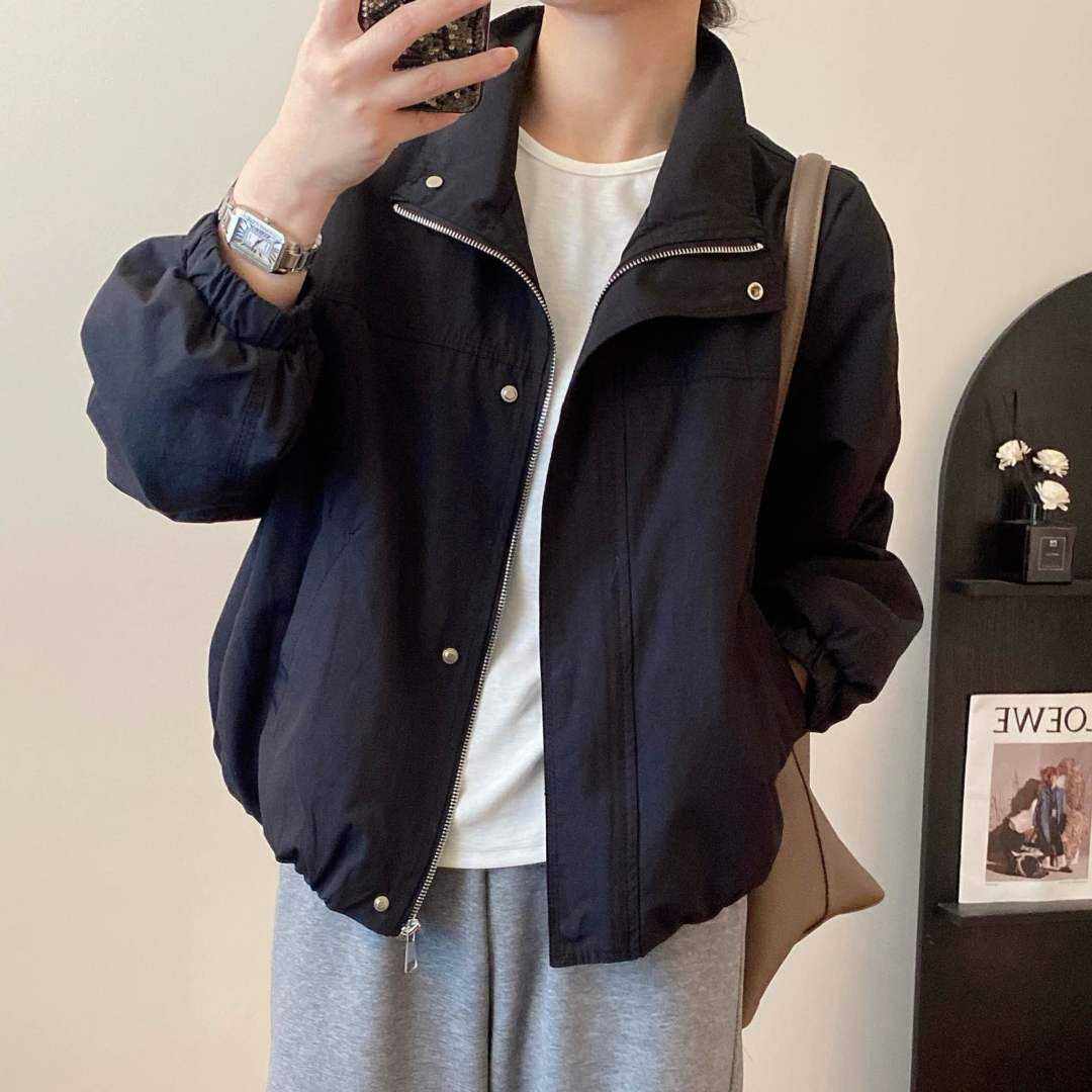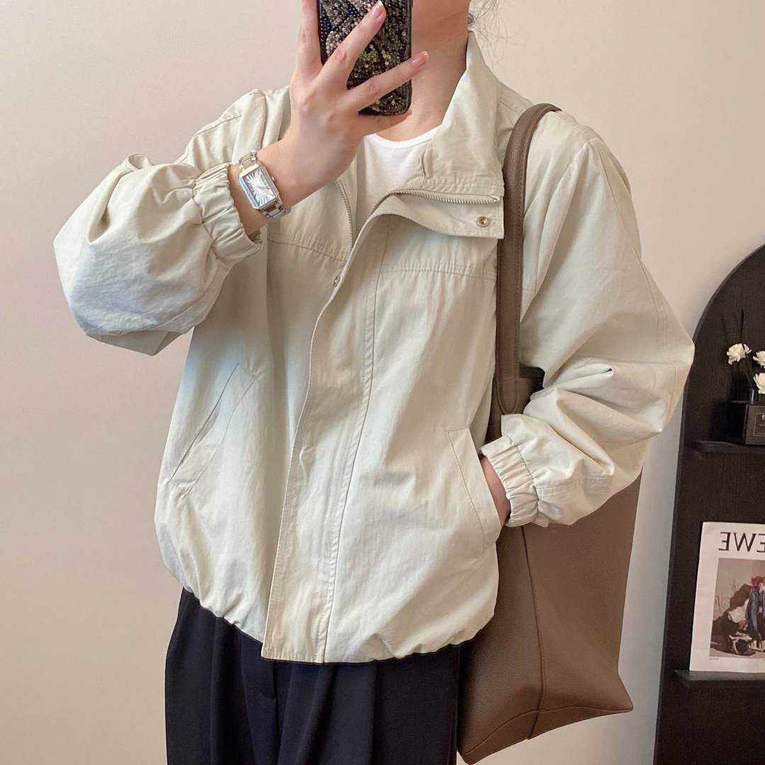 自留狠货 外套女宽松廓形显瘦夹克上衣 2025早秋立领下摆松紧短款