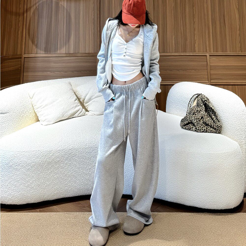 显瘦百搭直筒休闲裤 女春秋弯刀裤 高腰宽松阔腿裤 慵懒风糯米云朵裤