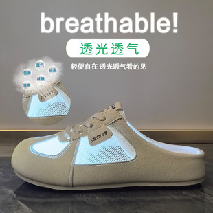 ins女学生网面透气休闲板鞋 2026夏季 韩版 新款 k3903 半托小白鞋