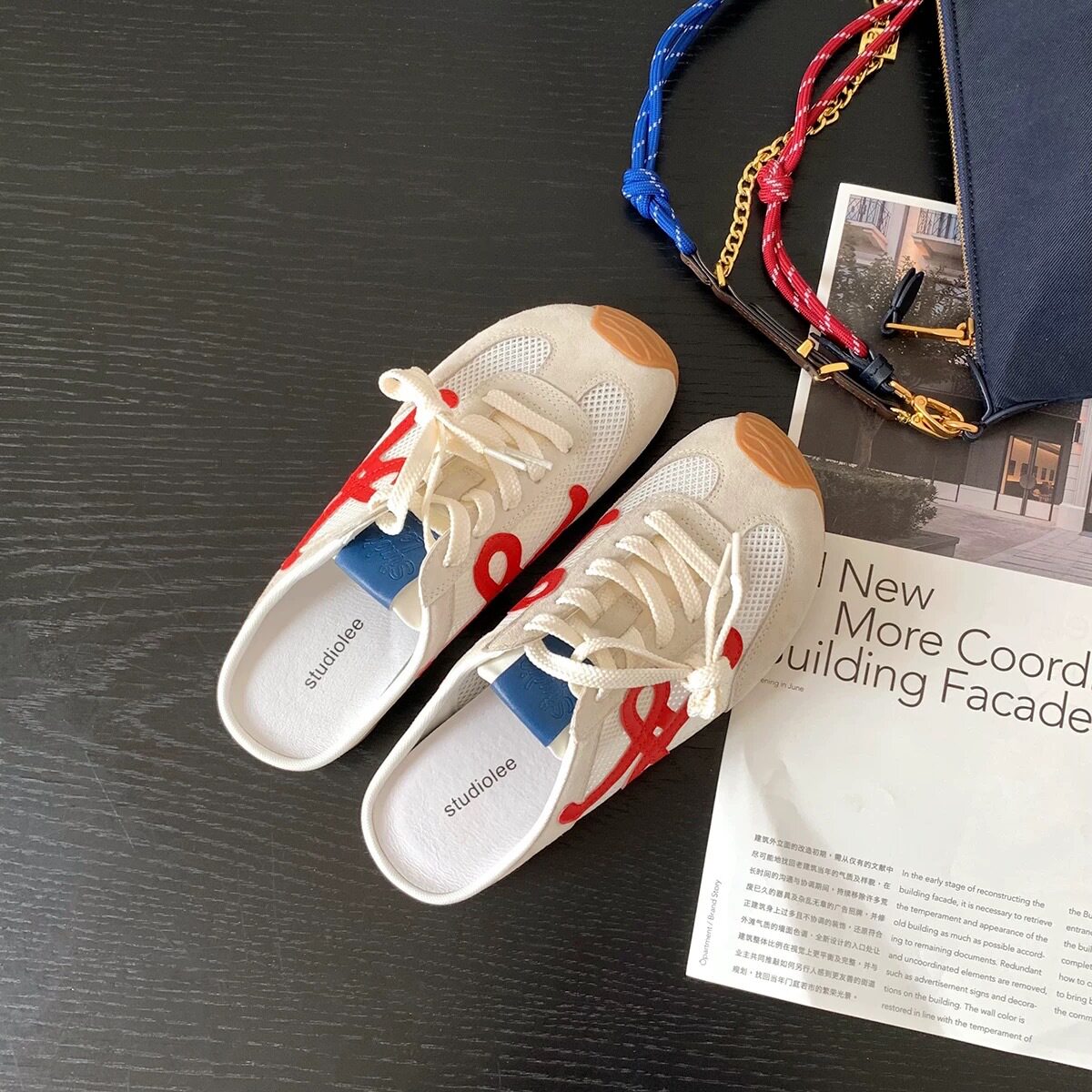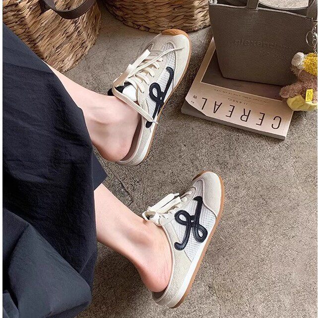 真皮德训半拖鞋 外穿网面透气休闲包头鞋 女 2025真皮夏季 葡萄妈同款