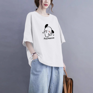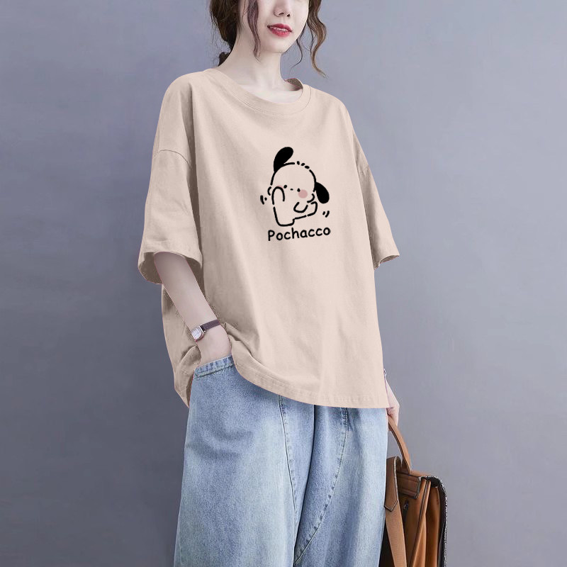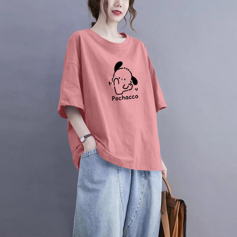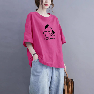 外贸出口清仓100%纯棉圆领短袖 t恤女休闲夏宽松遮肚显瘦气质上衣
