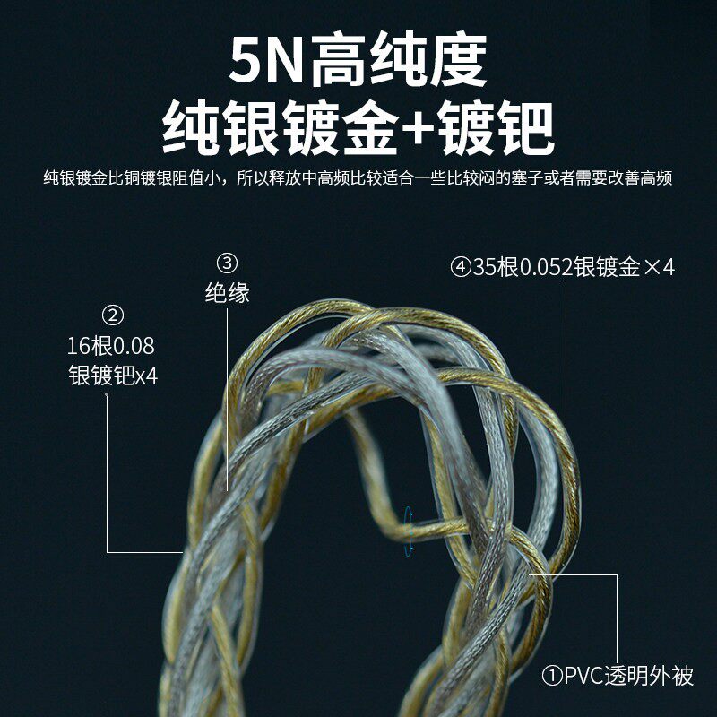 扬仕耳机升级线纯银镀钯ie80s 0.78耳 900适用于舒尔846索尼mmcx