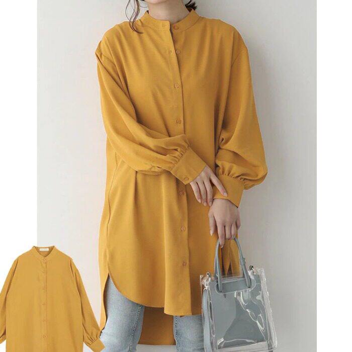 衬衫 韩版 覆古文艺范立领白色单排扣前短后长宽松长袖 新款 港味秋季