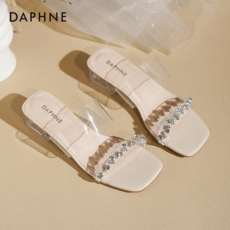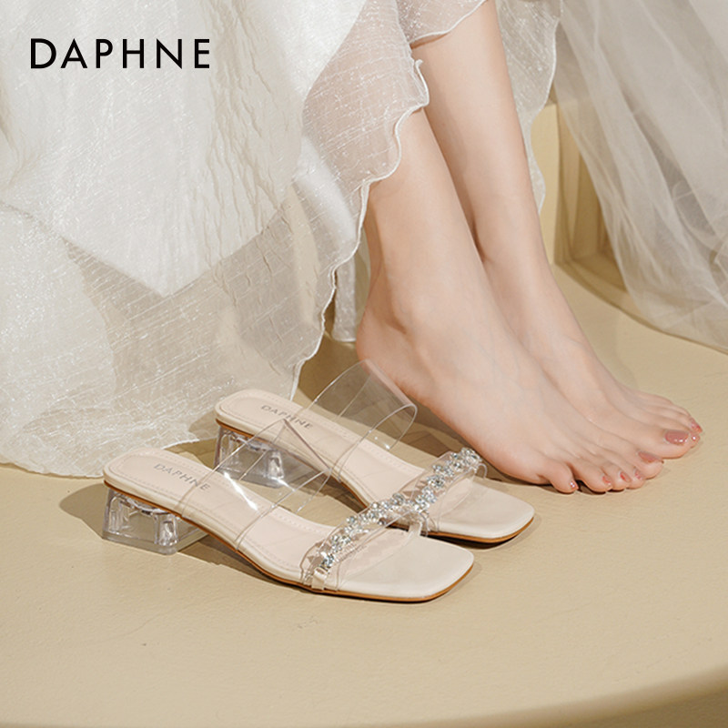 夏季 2026新款 一字外穿凉拖鞋 粗跟女鞋 子 达芙妮高跟凉鞋 高跟鞋 女款