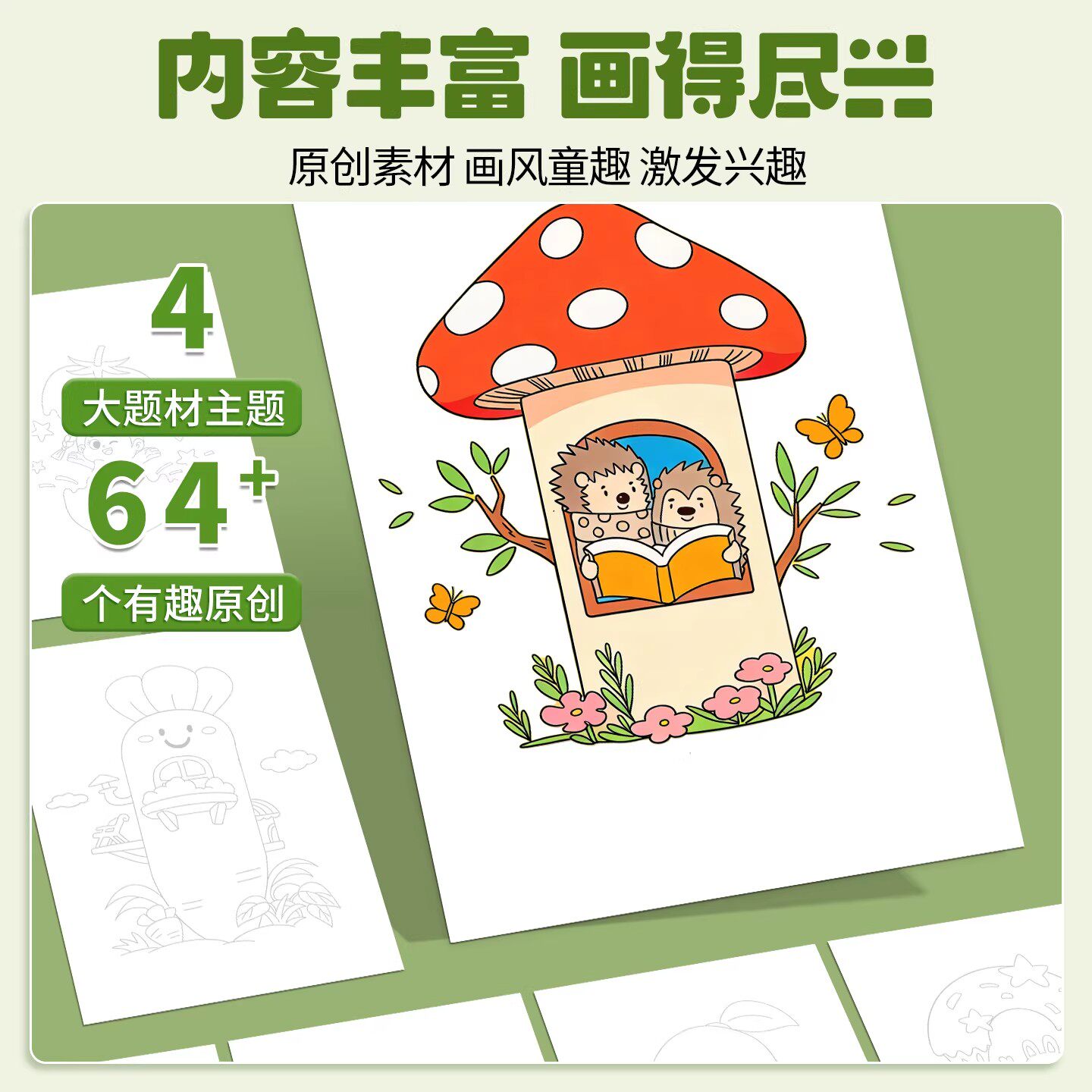美乐童年随心贴画画儿童涂色绘本涂鸦画卷描红本幼儿园图画本画纸