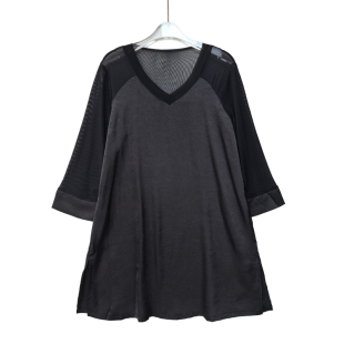 胖mm300斤赫本小黑裙纱网拼接下摆开叉连衣裙 夏装 甜觅特大码 女装