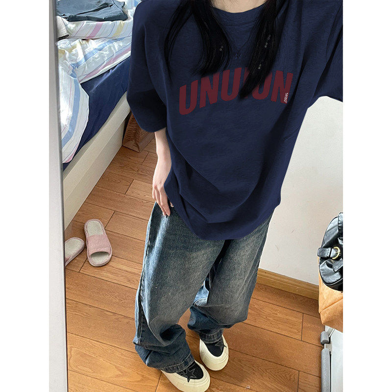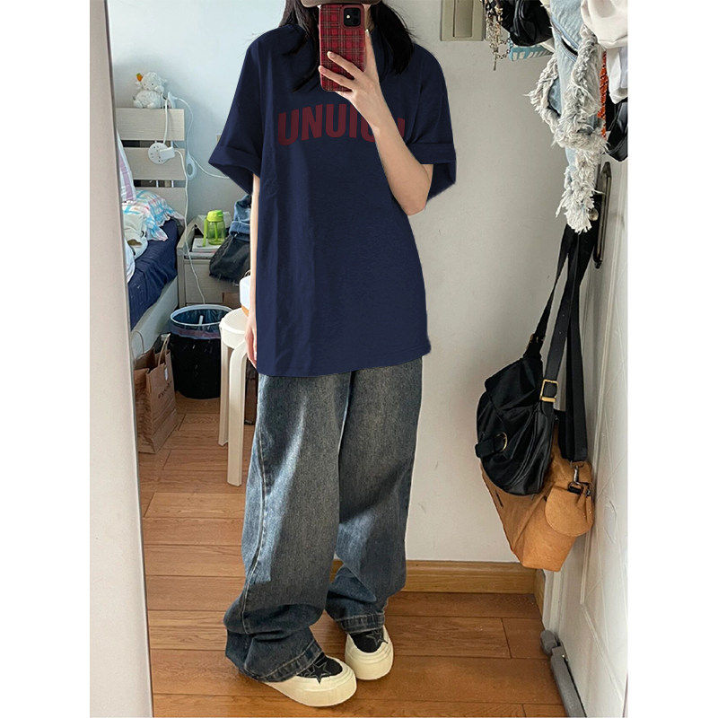 潮牌初中高中大学生宽松半袖 t恤女大童夏季 纯棉上衣 覆古短袖 美式