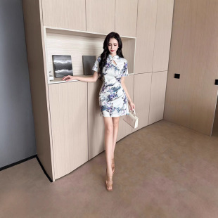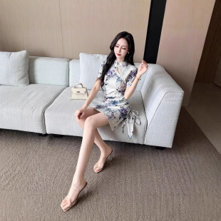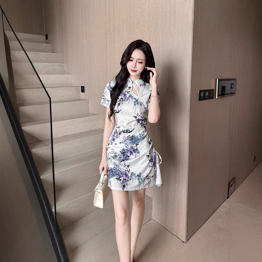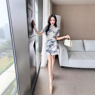 复古收腰修身 2670新款 少女旗袍改良年轻款 短款 显瘦包臀连衣裙 夏季