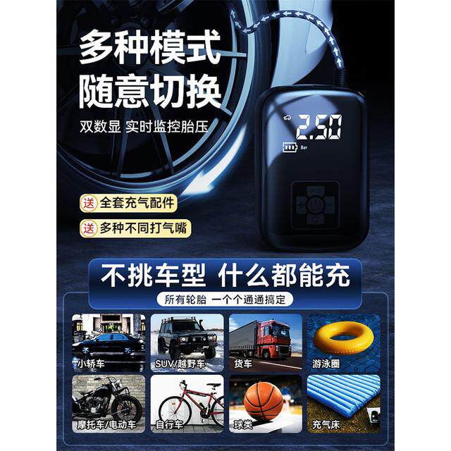 车载无线充气泵汽车便携式 打气泵电动小轿车用轮胎打气筒冲充气