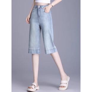 高腰显瘦窄版 2025新款 直筒中裤 薄款 天丝牛仔裤 冰丝六七分裤 女夏季