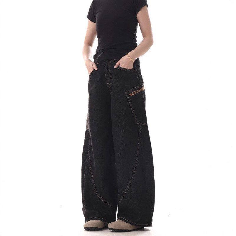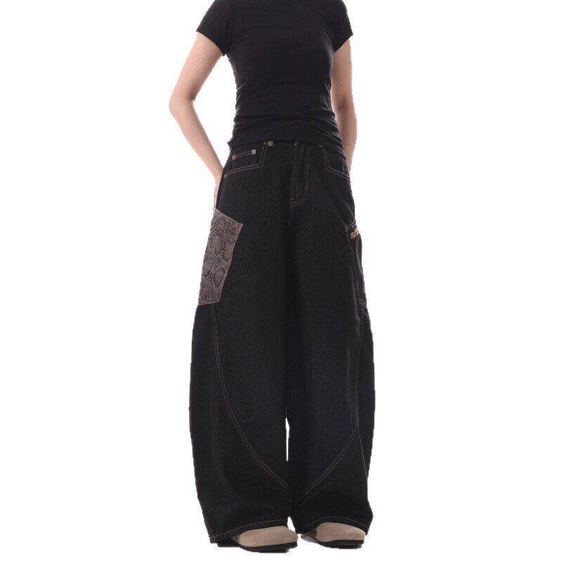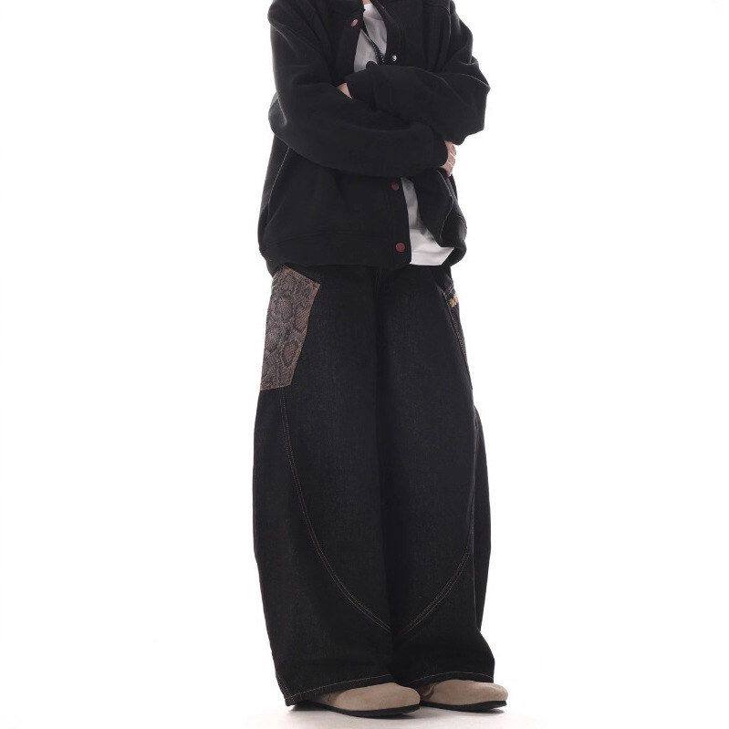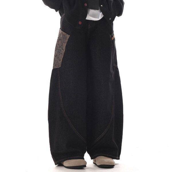 男夏季 弯刀休闲痞帅牛仔裤 拼接复古 子潮流宽松纹阔腿裤 拖地蛇皮裤