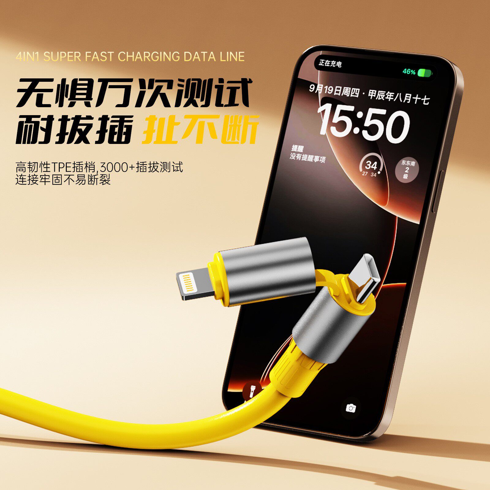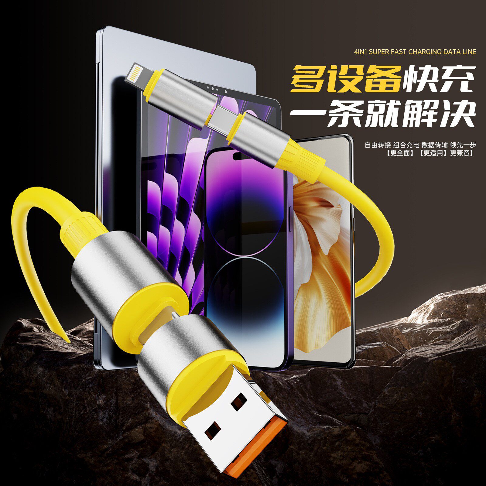 240W葵花四合一快充数据线1米2米适用于华为苹果15 16USB充电线