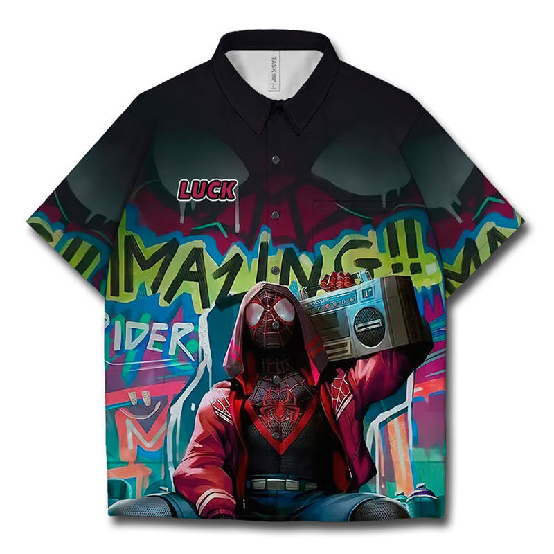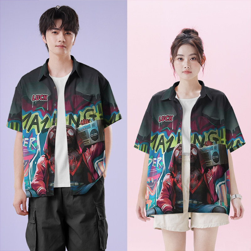 短袖 衬衣夏设 衬衫 女装 无界 男装 蜘蛛迈尔斯平行宇宙电影角色大码