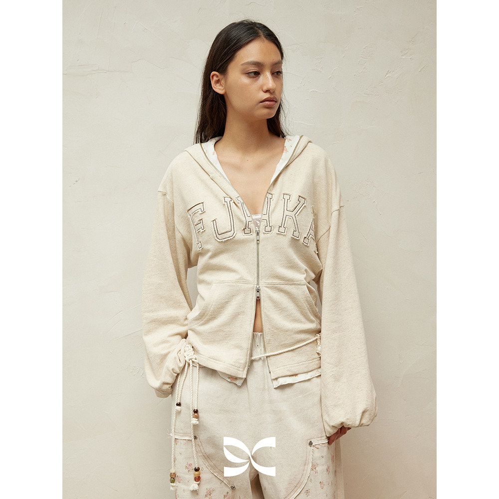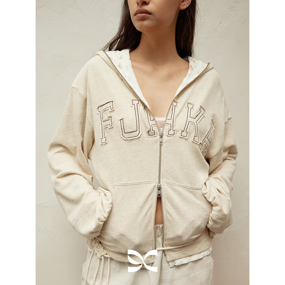 SQUARE 卫衣外套上衣 CIRCLE方圆毛边贴布字母刺绣碎花拼接蝙蝠袖