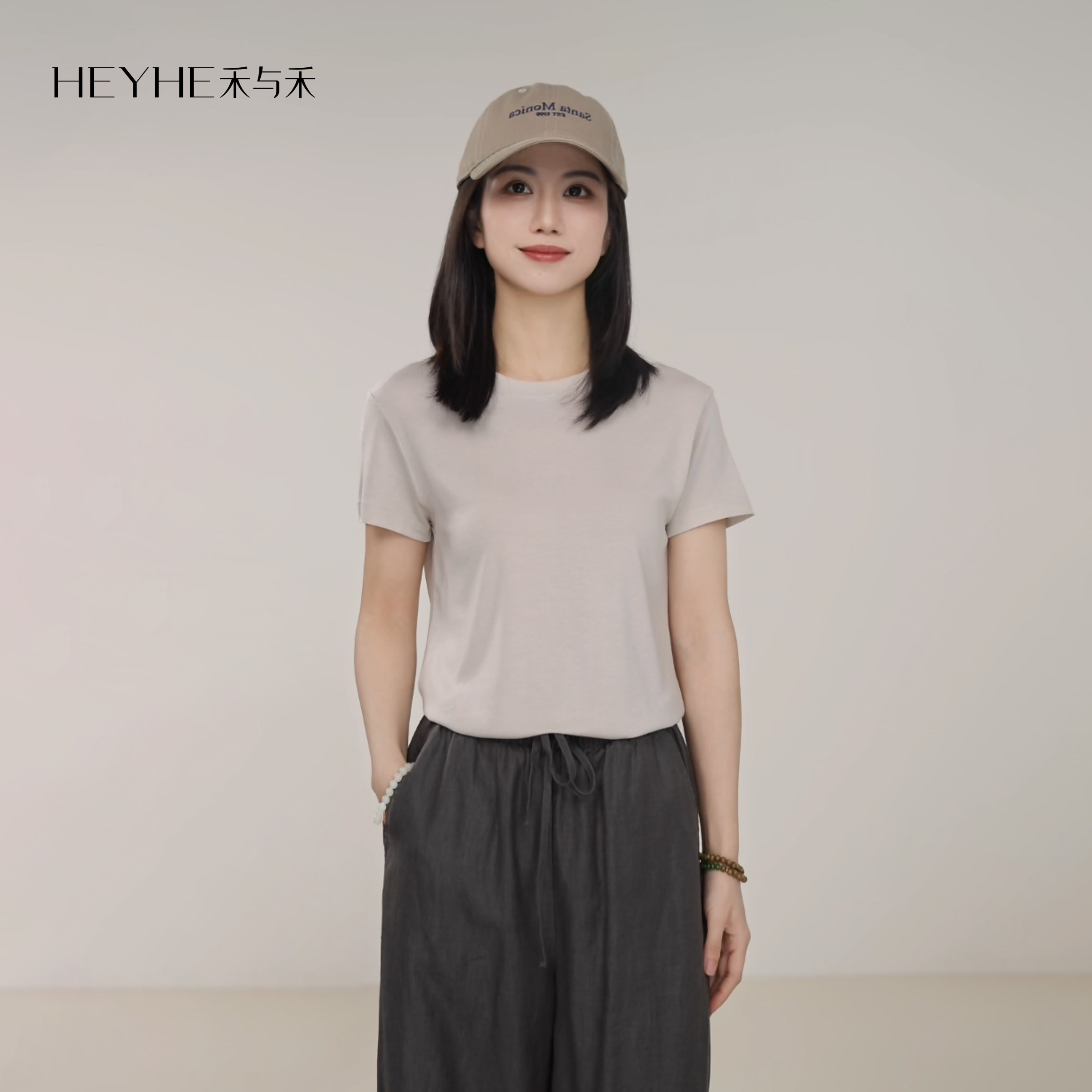 莱赛尔桑蚕丝弹力正肩亲肤圆领打底上衣T恤短袖 小禾 松果T