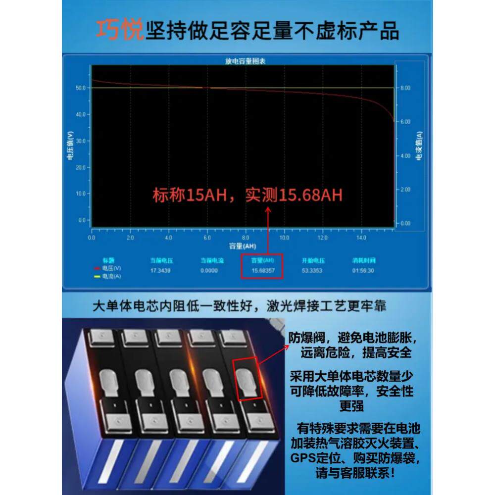 巧悦48V38AH电动轻便摩托车磷酸铁锂电池瓶60V72v二三轮外卖快递
