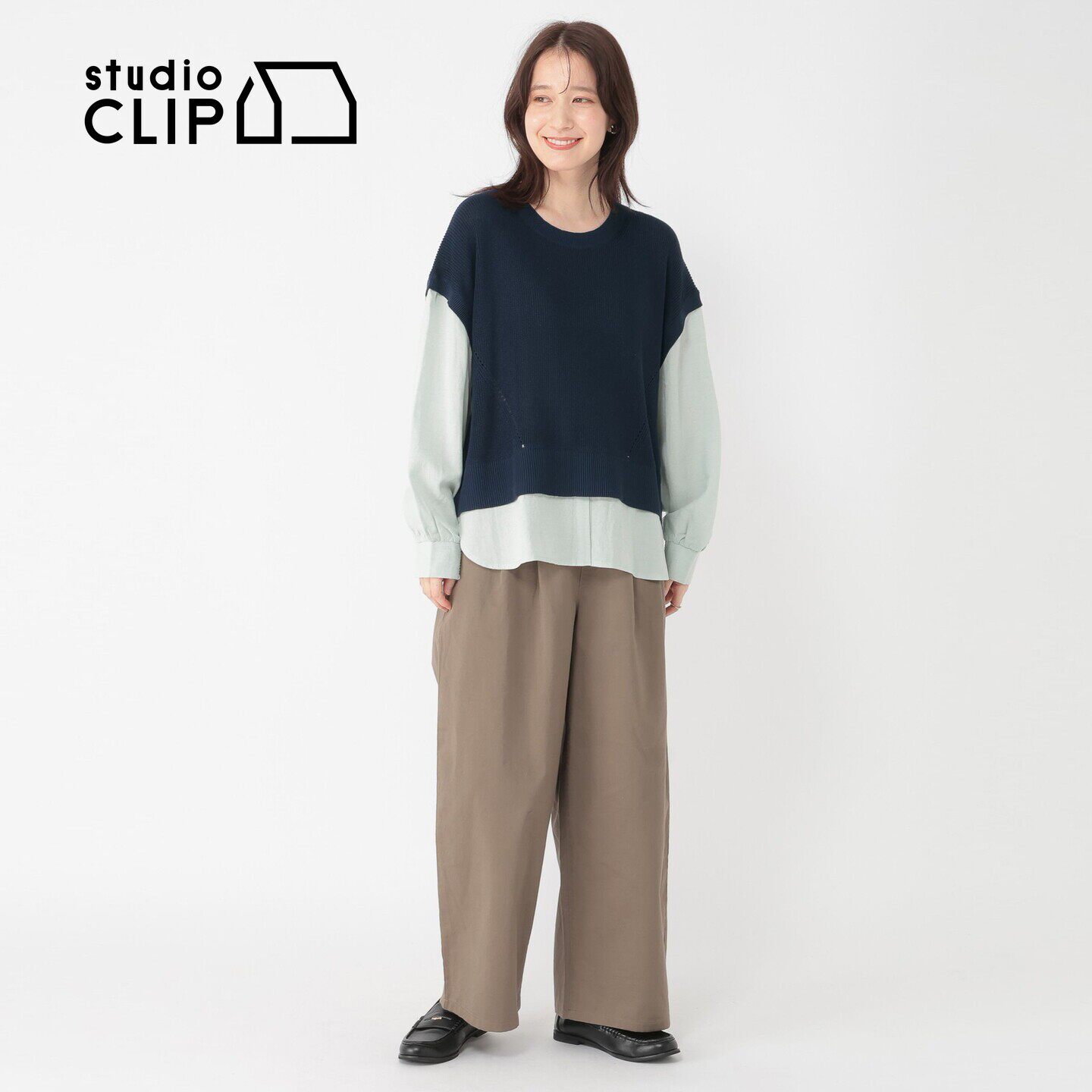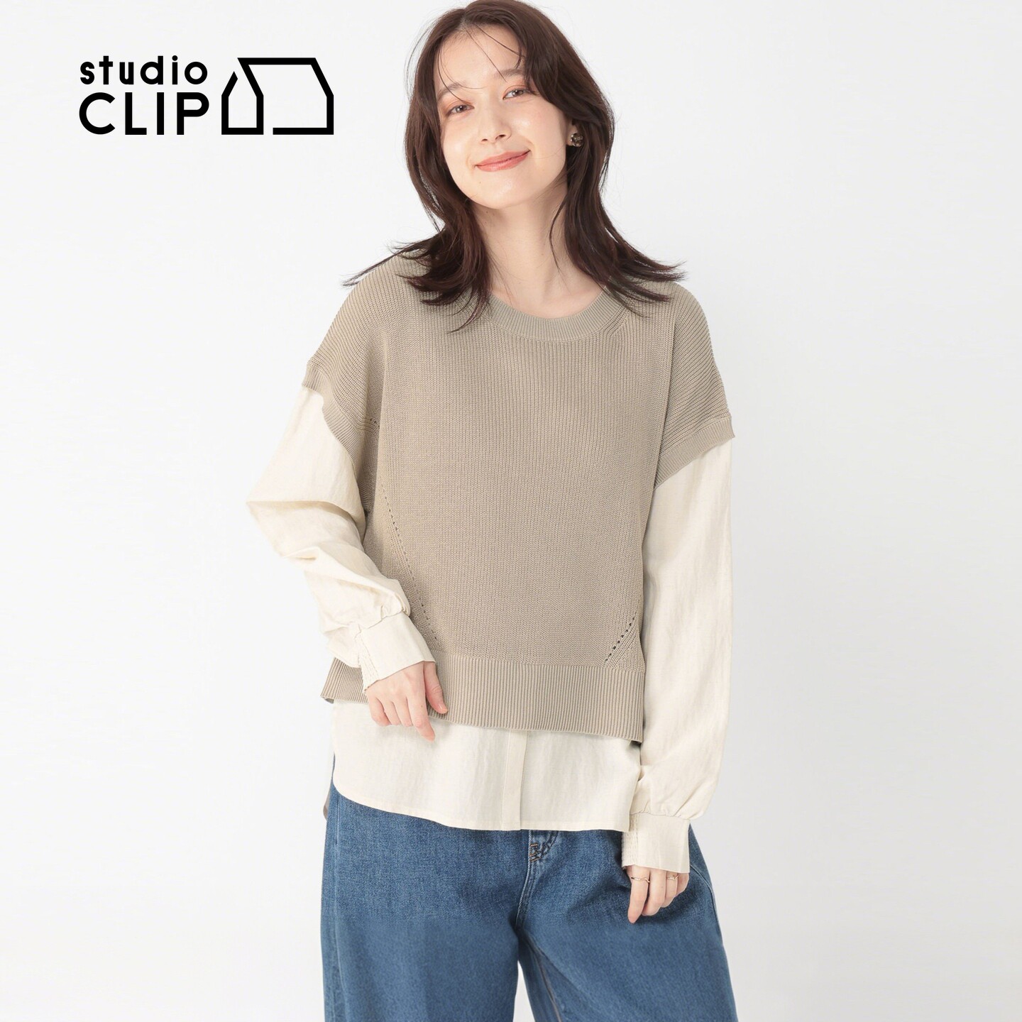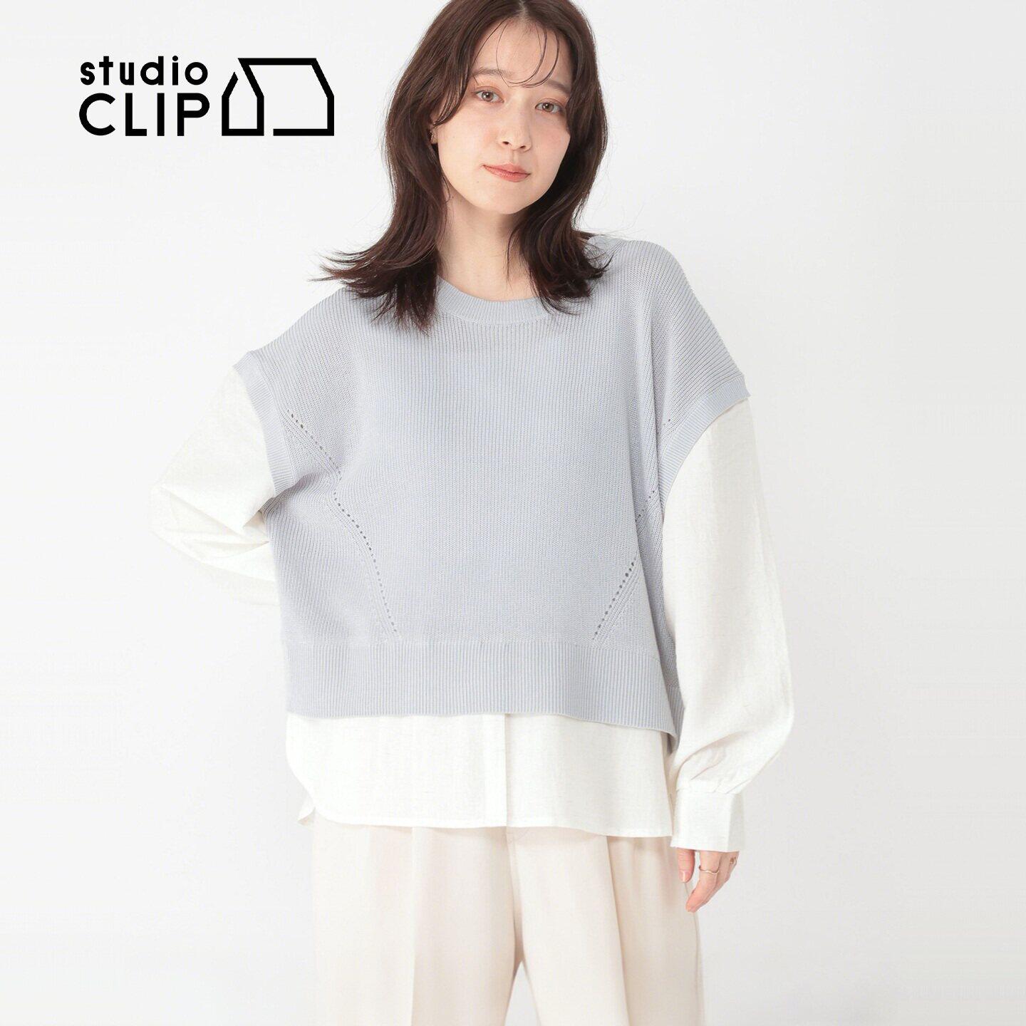 新款 studio 女2026春季 针织衫 温柔色系拼接假两件上衣662397 CLIP