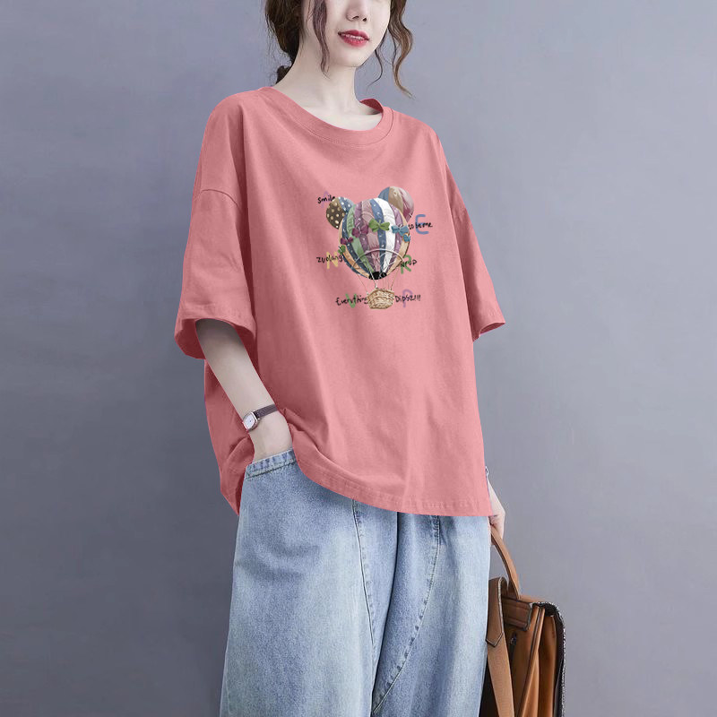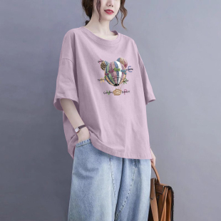 外贸出口清仓100%纯棉宽松短袖 百搭显瘦上衣夏 t恤女气质2026新款