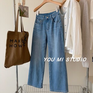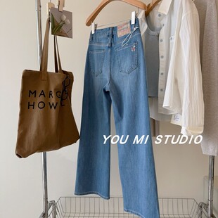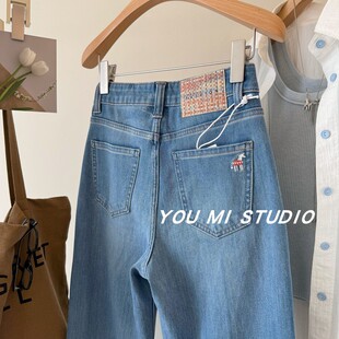 法棍裤 显瘦高腰弹力九分牛仔裤 子女26春 两色直筒裤 彩色小马刺绣