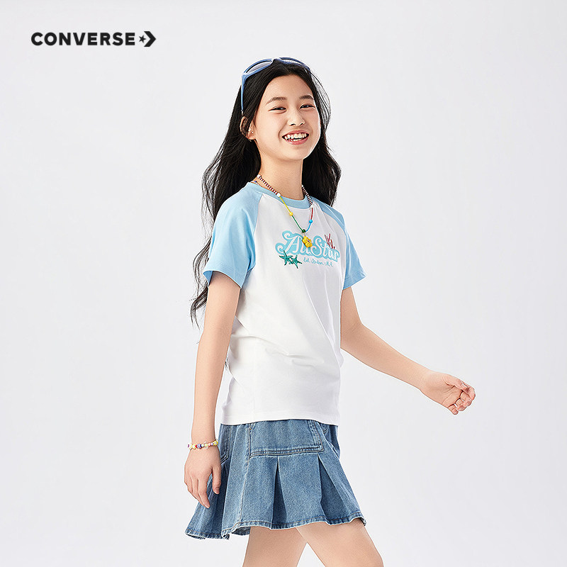 插肩上衣圆领休闲时尚 匡威童装 新款 T恤2026夏季 宽松运动 女童短袖