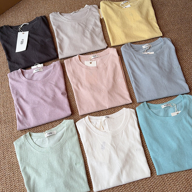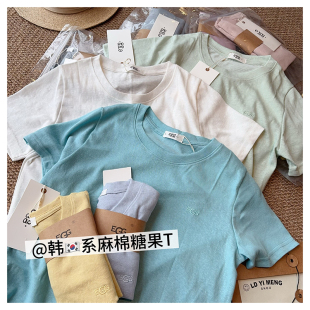 T恤 简约圆领小刺绣女士短袖 030520 「糖果刺绣麻棉T恤」韩系