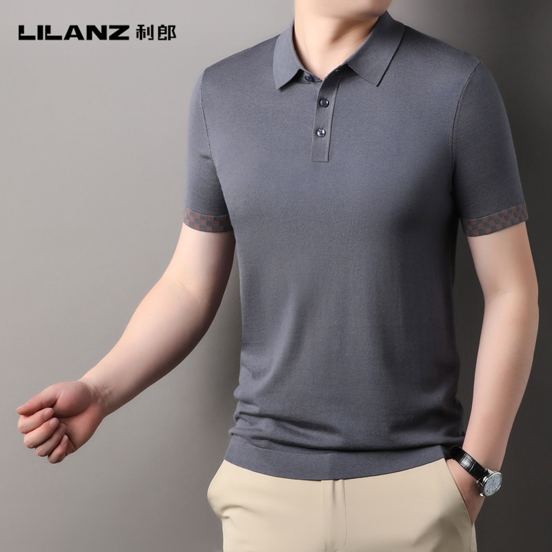 翻领POLO衫 利郎男装 桑蚕丝短袖 男士 商务休闲百搭高端针织T恤 正品