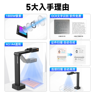 科密高拍仪高清扫描仪连续快速扫描专业办公A3A4文件证件发票扫描自动连拍书籍免拆OCR文字识别转换网课教学
