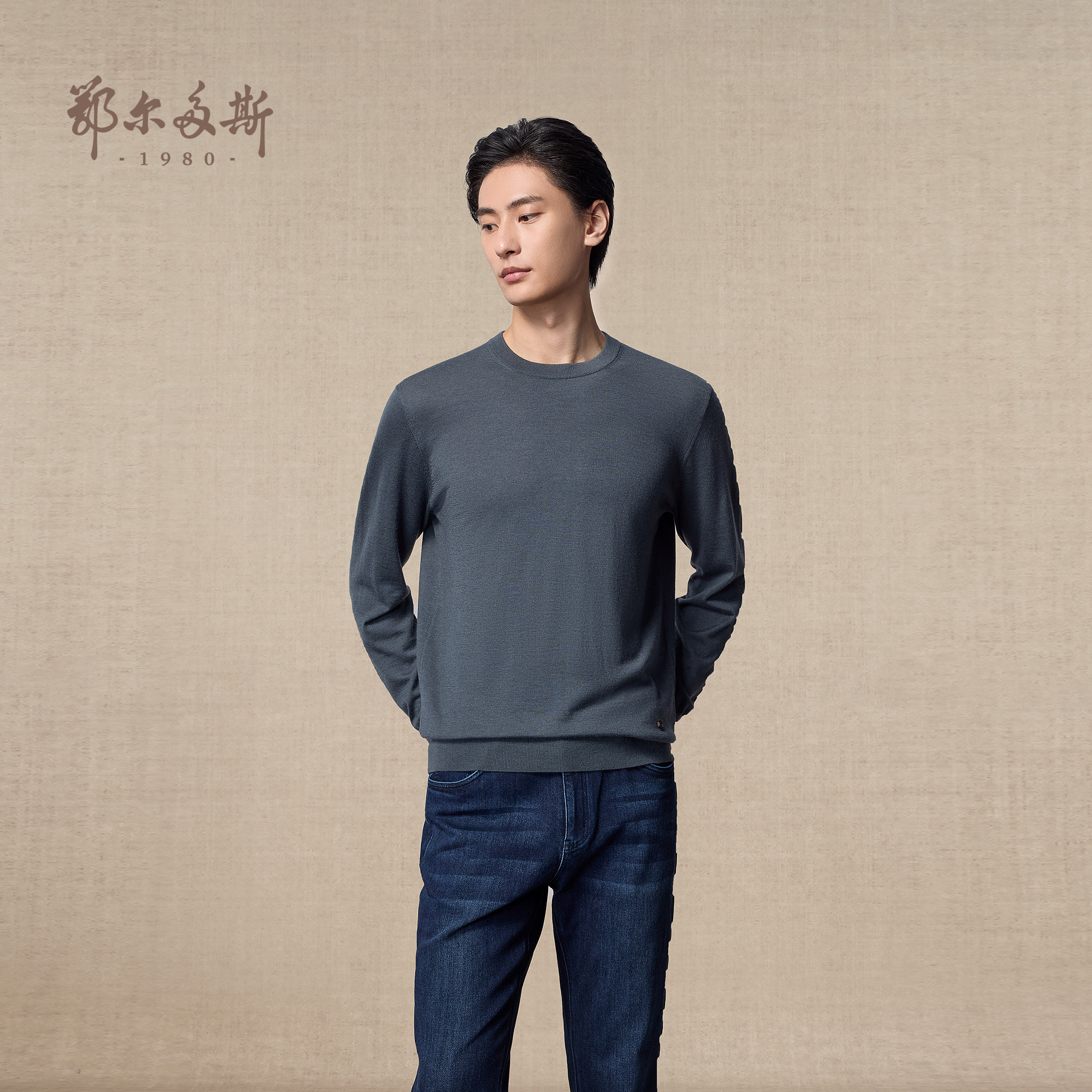 精纺 25秋冬新品 鄂尔多斯1980 圆领羊绒衫 轻薄保暖套衫 男装