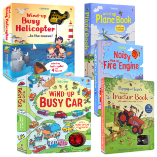 英语早教启蒙亲子读物纸板书 进口儿童图书 Busy Train 发条玩具轨道书 Car Bus 英文原版 Usborne 小汽车挖掘机飞机海盗船 Wind