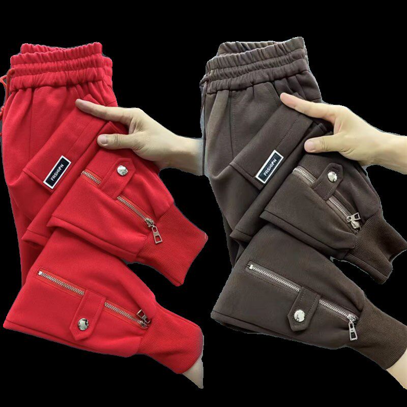 纯棉卫裤 高腰显瘦束脚运动裤 女韩版 加绒加厚哈伦裤 子 时尚 秋冬新款