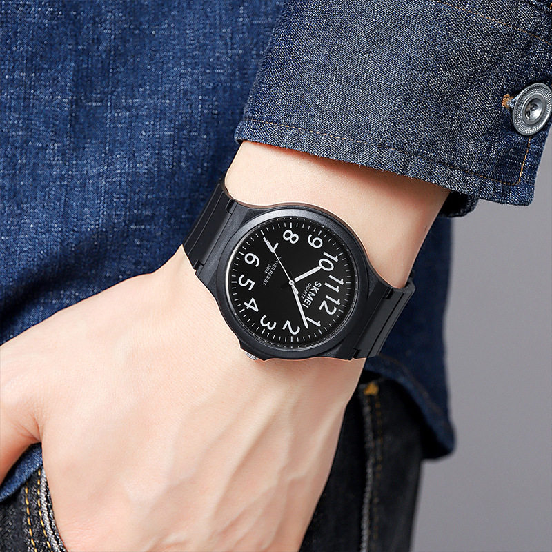 防水石英学生男表圆形大表盘腕表 手表数字个性 时刻美时尚 简约男士