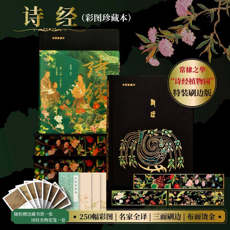 彩图珍藏本 布面精装 三面全彩刷边 当当网 近4000条注释 诗经译注 许渊冲英译诗经底本 诗经植物园 赠藏书票