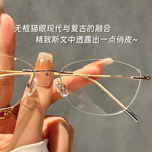 超轻钛架纯欲无边框眼镜女款 近视可配度数高级感显脸小无框眼睛架