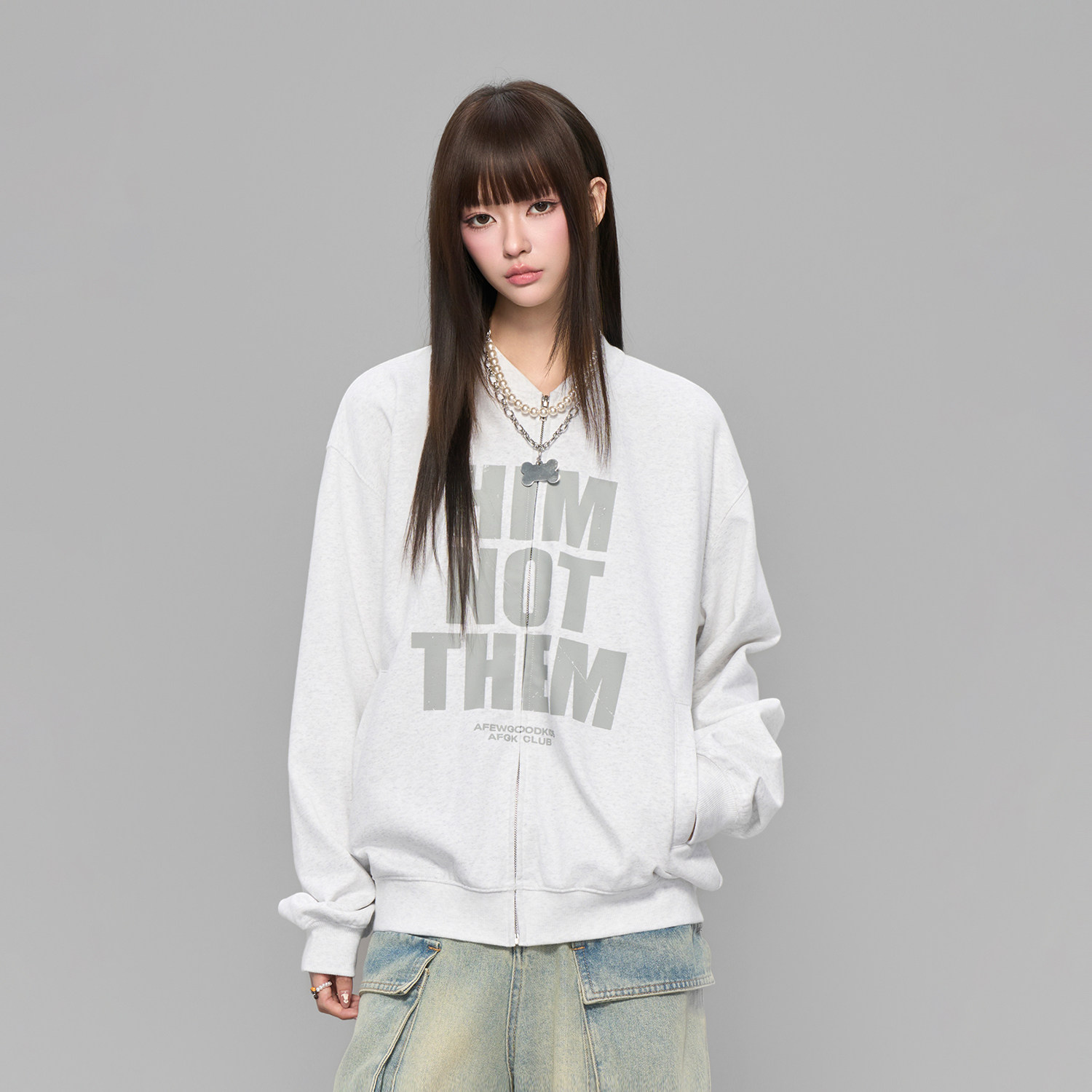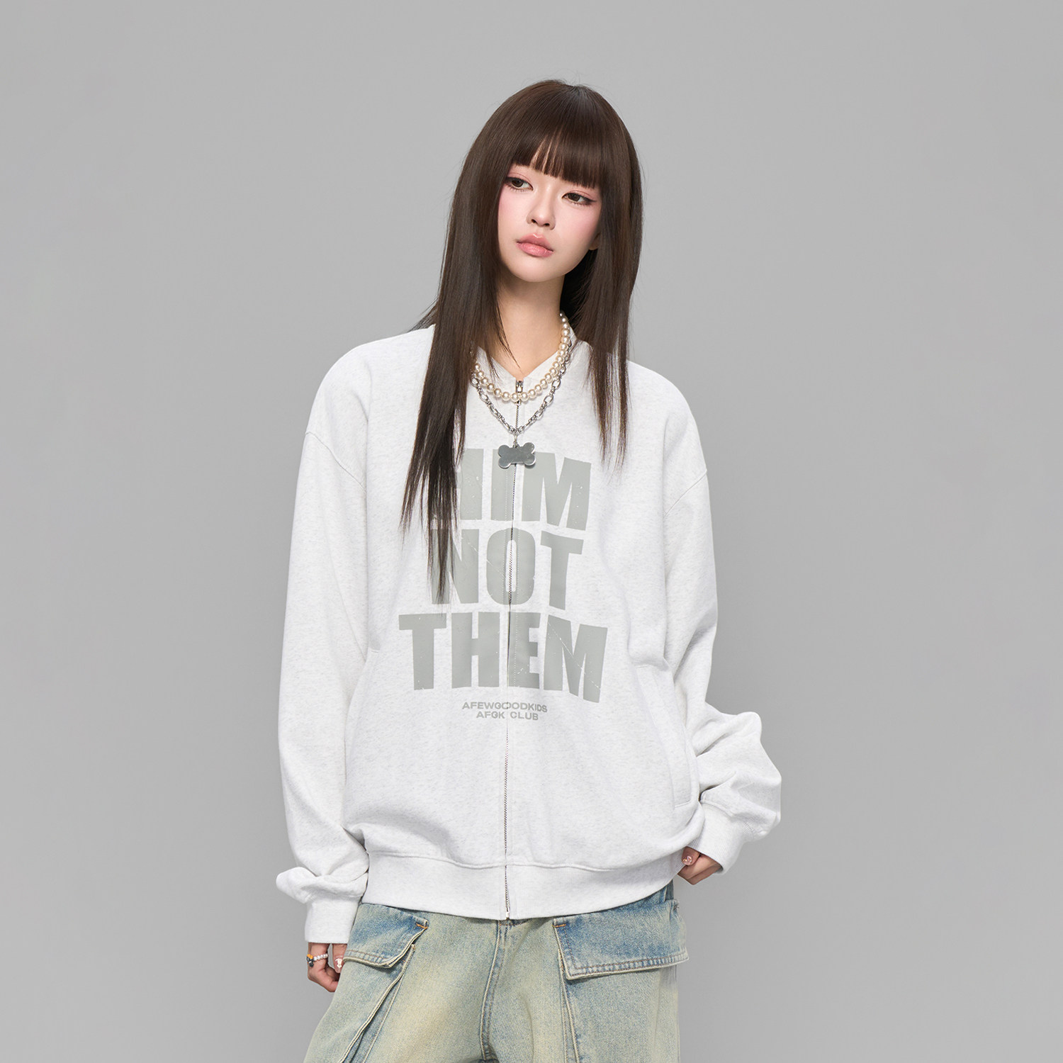 裤 CulturE小众复古做旧牛仔套装 夹克外套废土重磅拉链大口袋工装