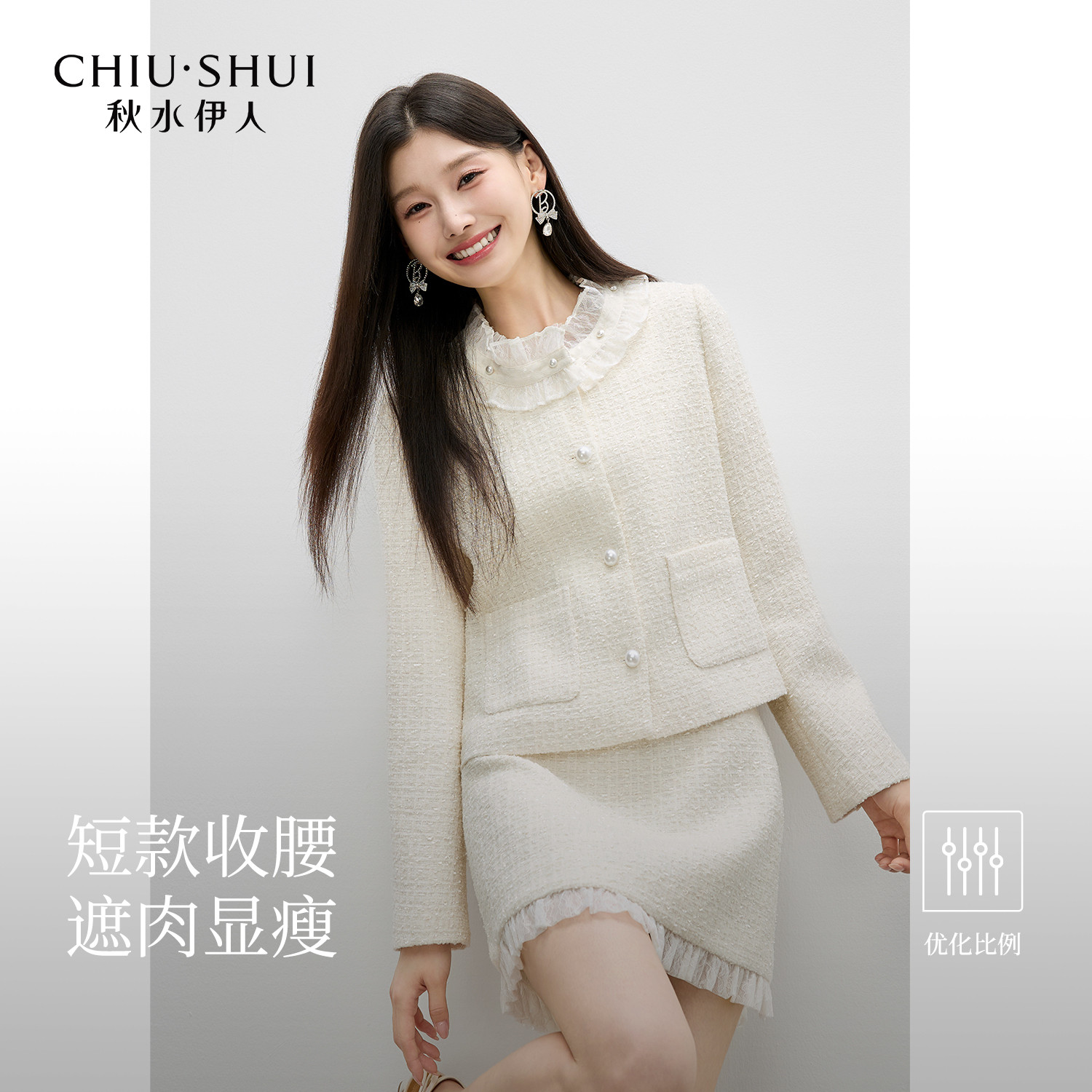 优雅半裙套装 秋水伊人通勤百搭小香风两件套2026春装 时尚 经典 新款