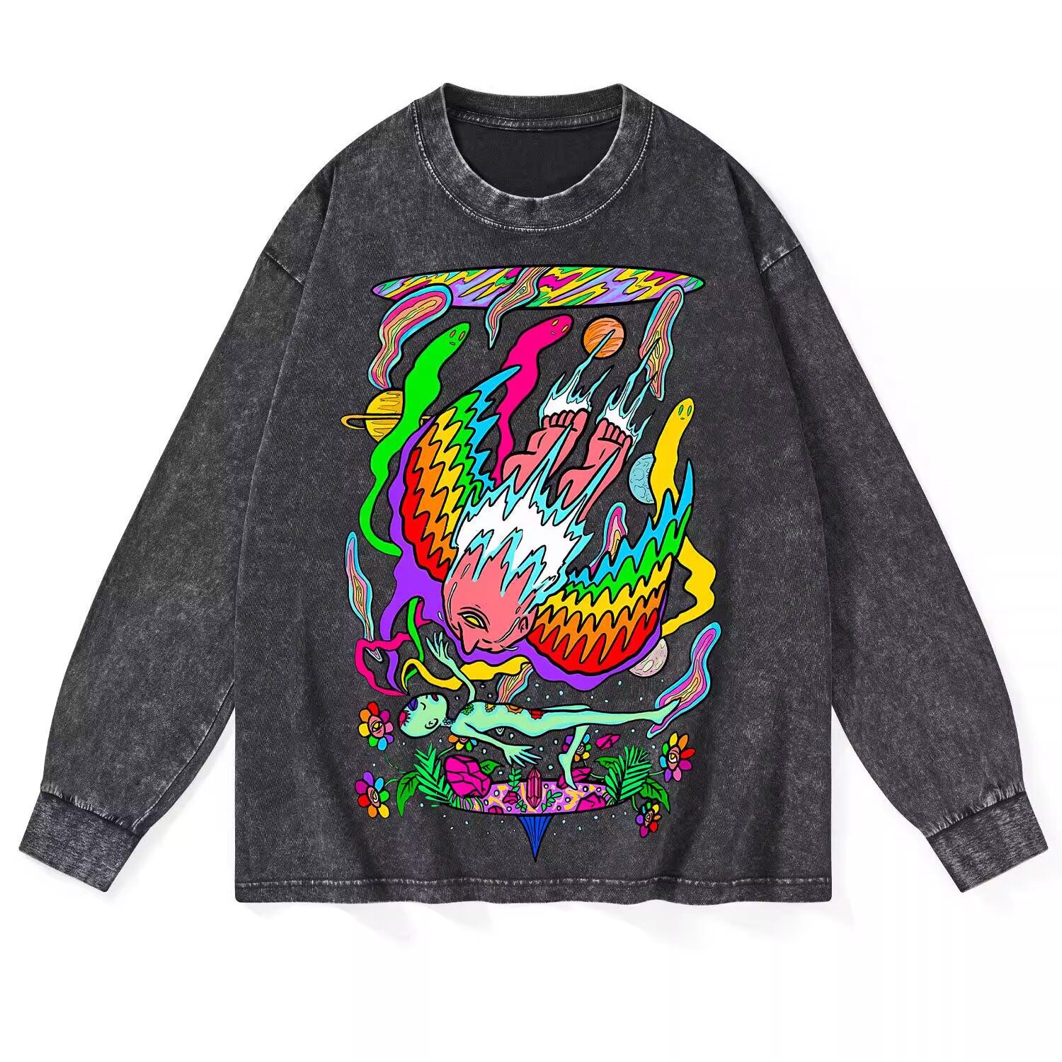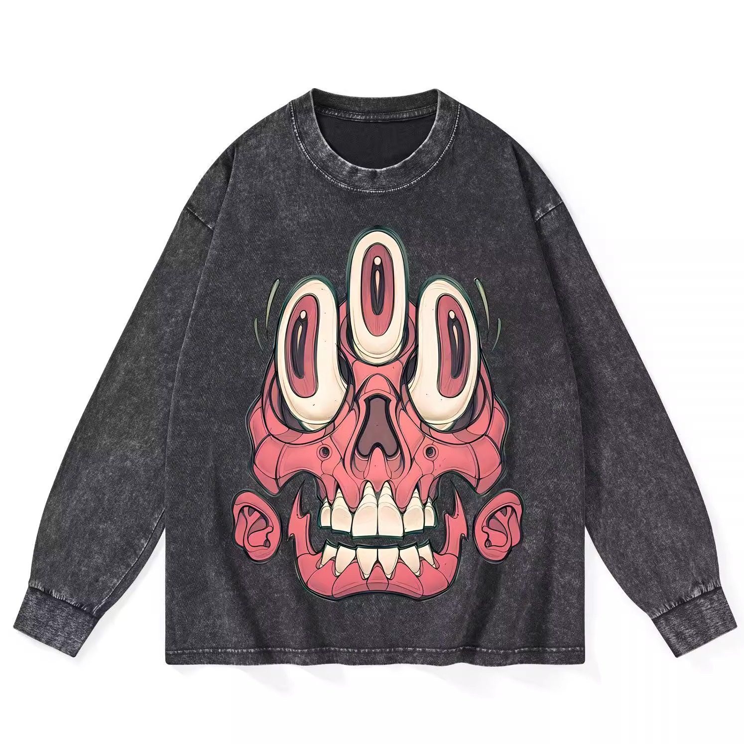 学生宽松t恤 复古做旧动漫纯棉男女洗水长袖 花可美新款 美式