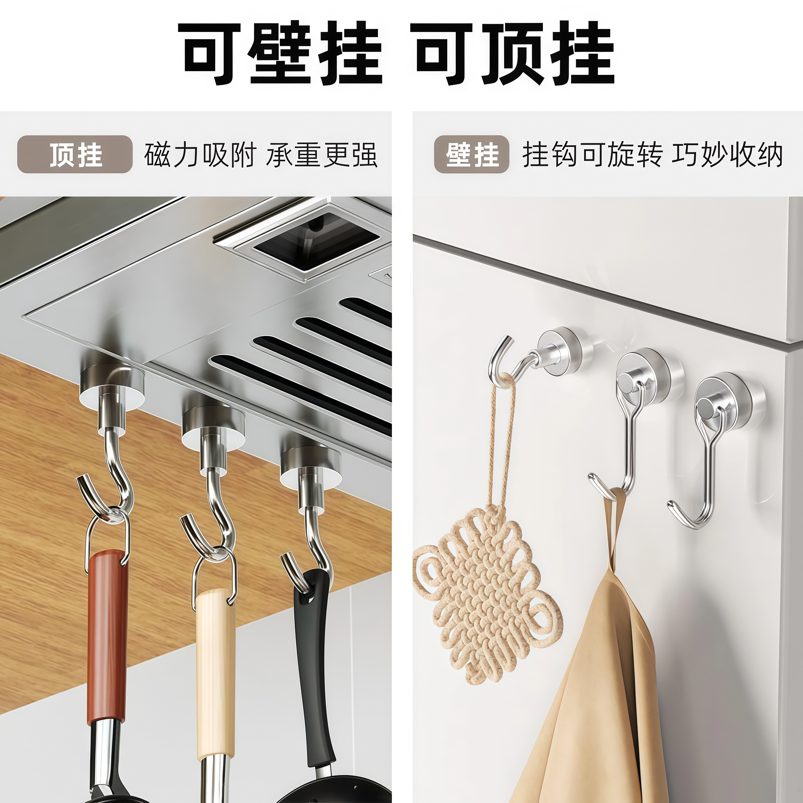磁吸挂钩强力磁铁圆形冰箱强磁吸铁石旋转磁性挂钩磁力收纳免打孔