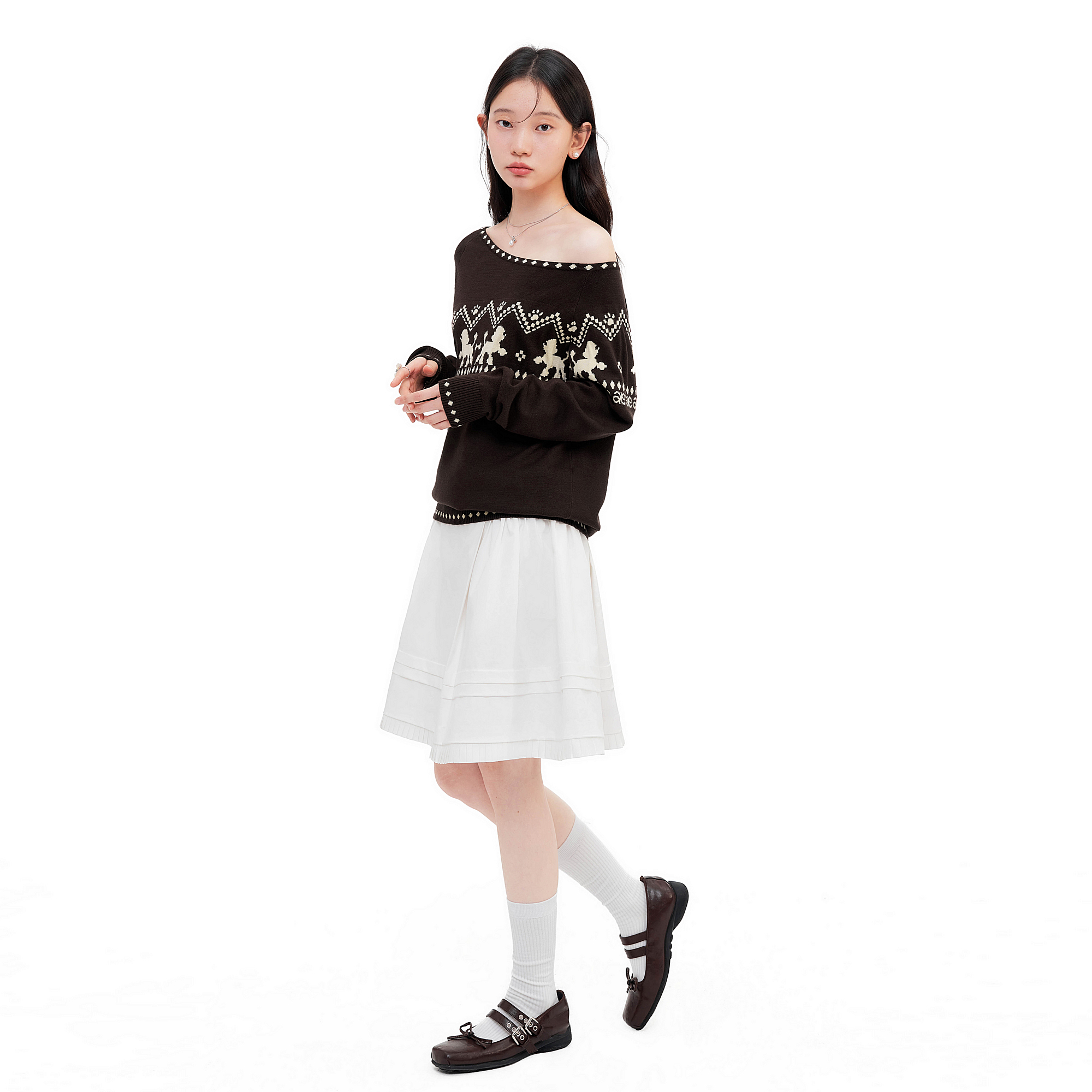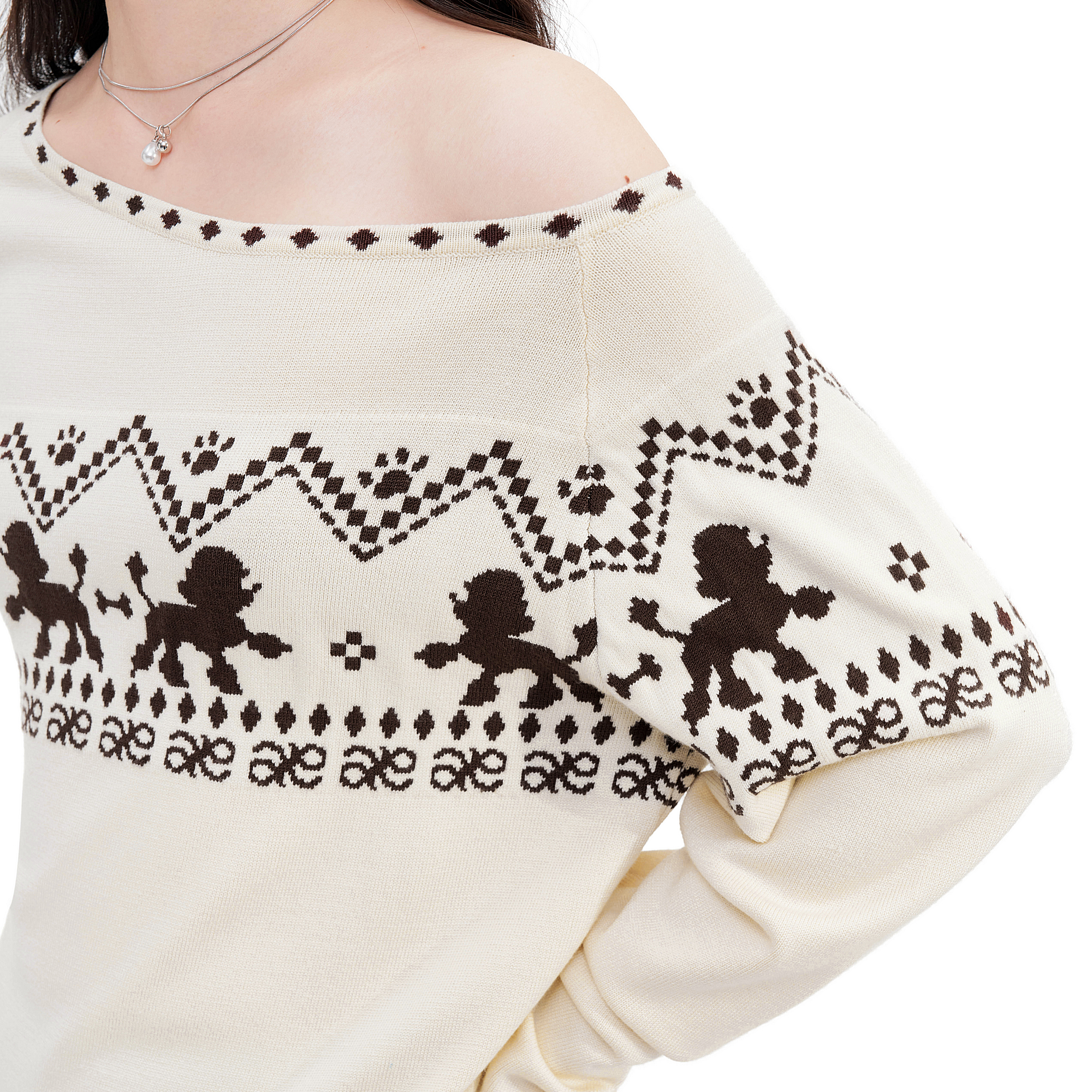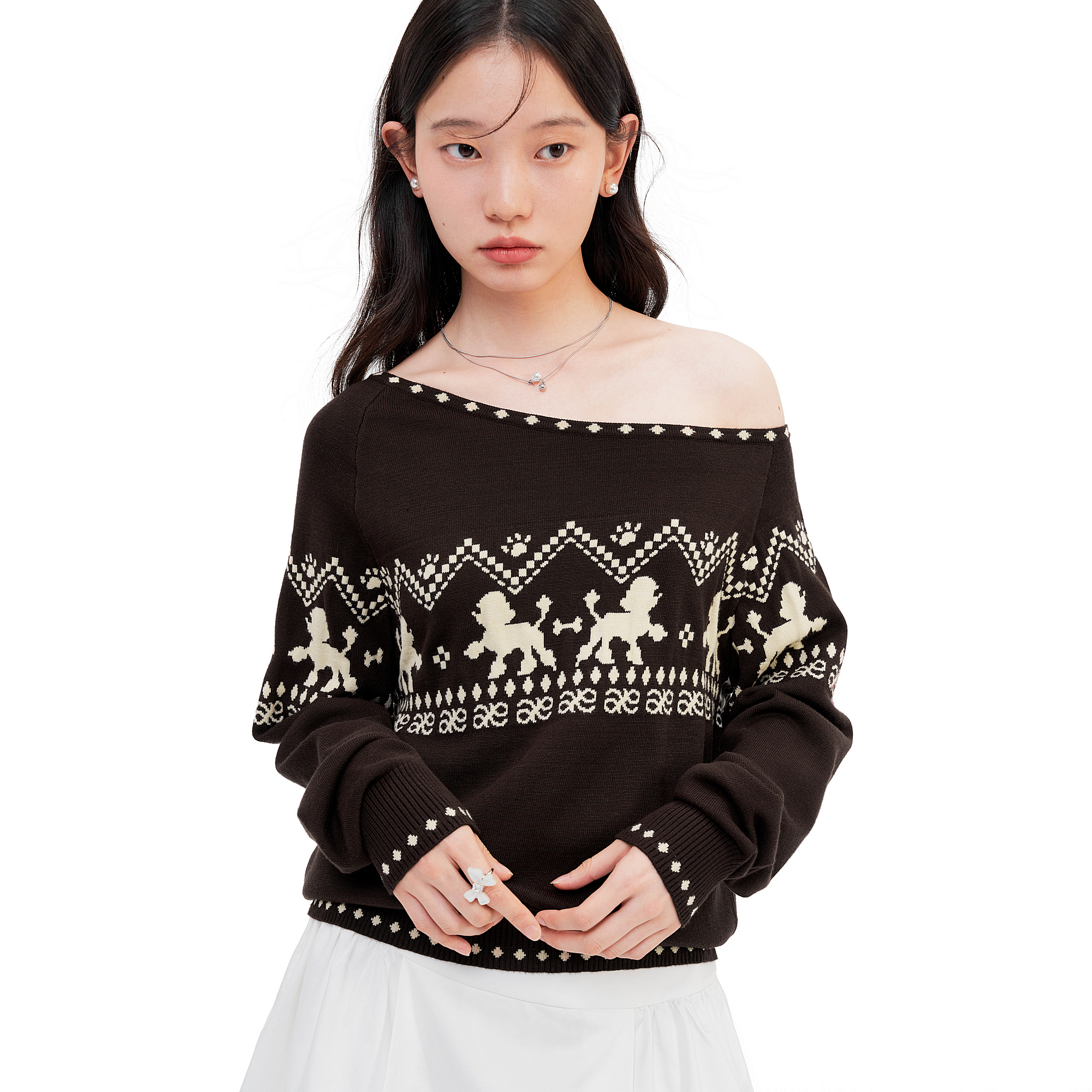 套头长袖 斜肩费尔岛针织毛衣2025秋季 不规则休闲上衣 新款 AYF