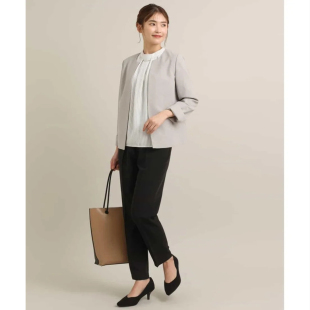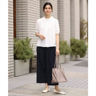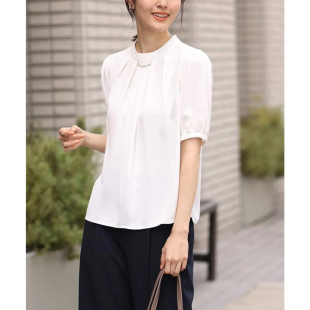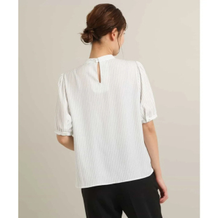 条纹衬衫 气质OL褶皱圆领后颈一粒扣短袖 女30557 新款 日单品牌夏季