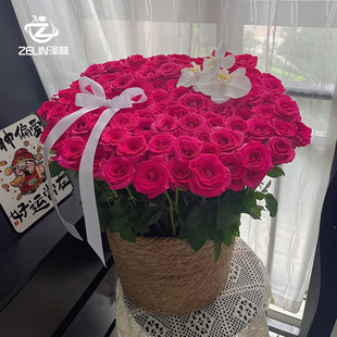 泽林七夕新款 特大号藤草编织花篮花店插花篮子99朵玫瑰抱抱桶礼盒