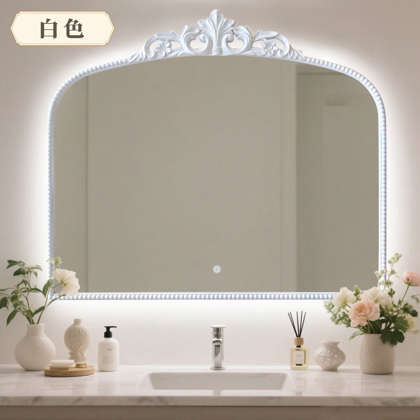 镜子卫生间化妆镜挂墙式 发光智能镜触摸屏浴室镜带灯防雾人体感应