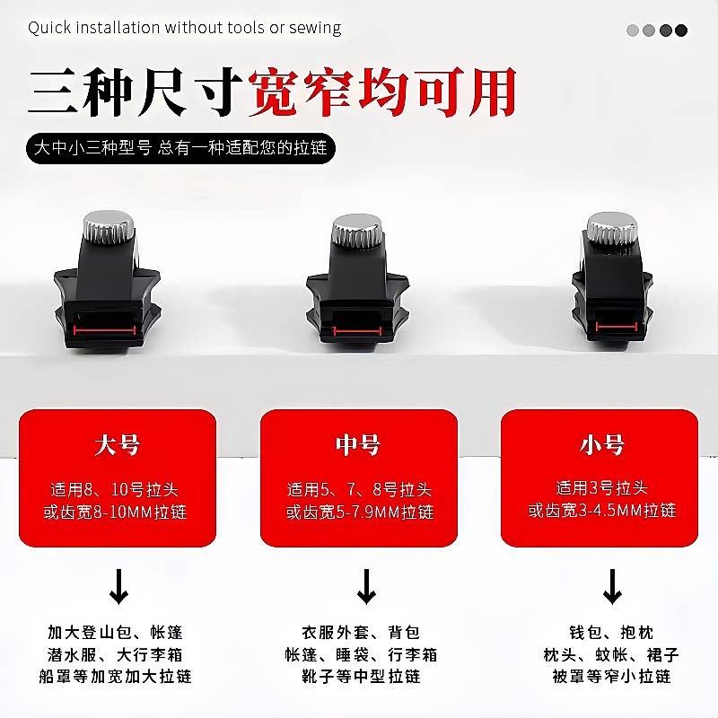 拉锁头替换免工具拉链头修复神器衣服鞋 靴通用配件金属拉头可拆卸
