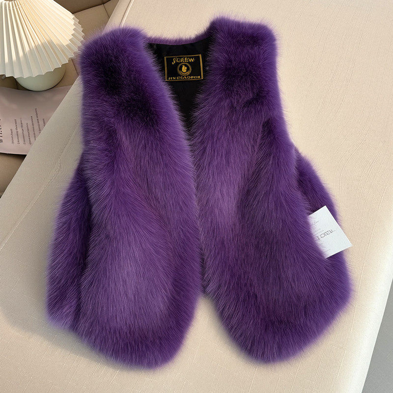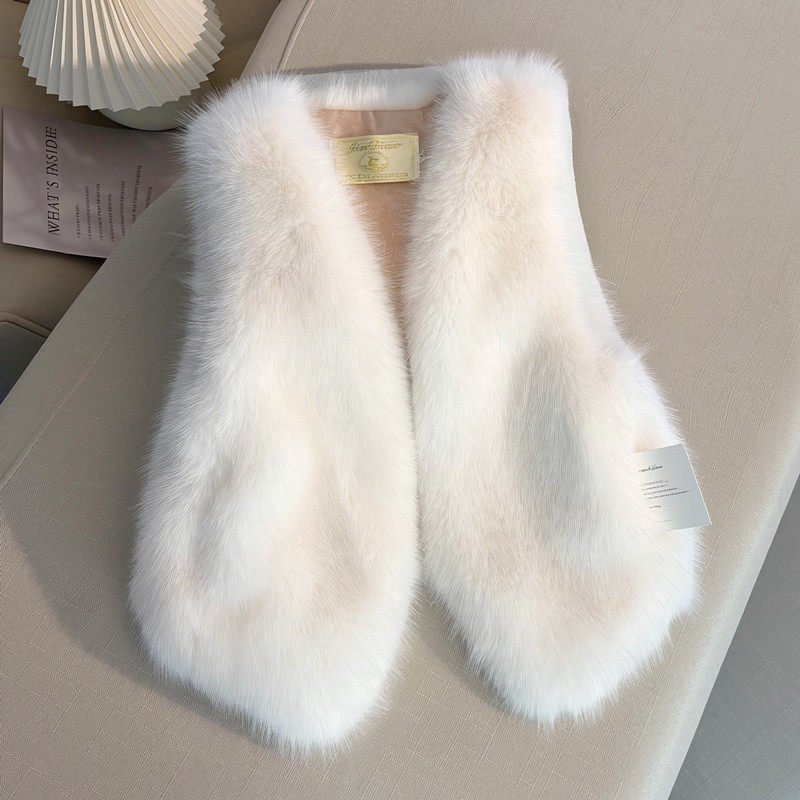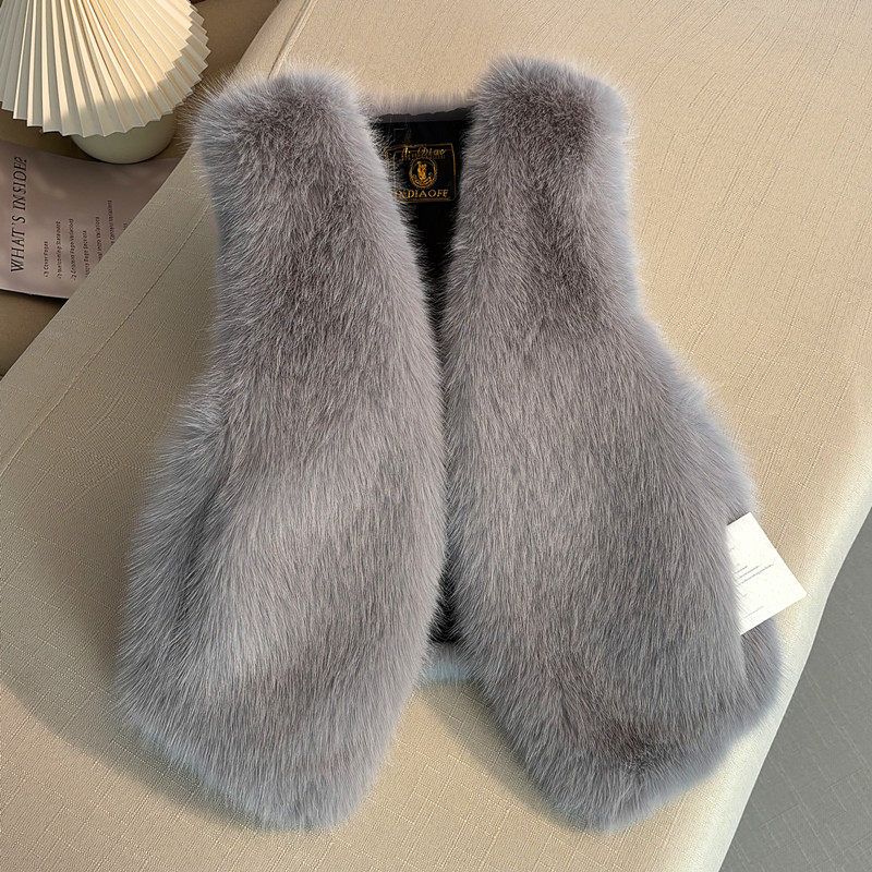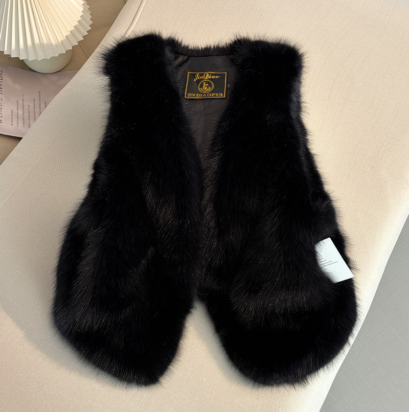 显瘦 外套时尚 小香风仿狐狸毛短款 皮草马甲女外穿显瘦坎肩黑色无袖